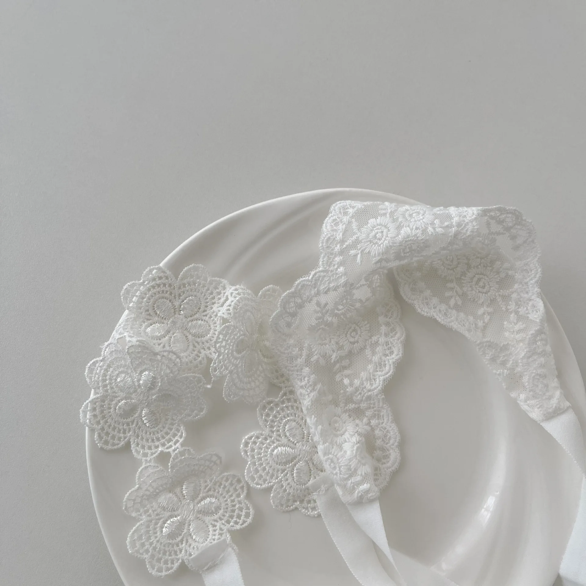 Diadema para recién nacido de Color blanco Beige, bordado de encaje, tocado Floral de princesa para niño pequeño, diadema bonita para bebé, accesorios de fotografía