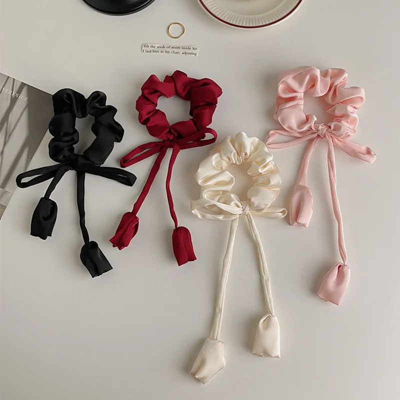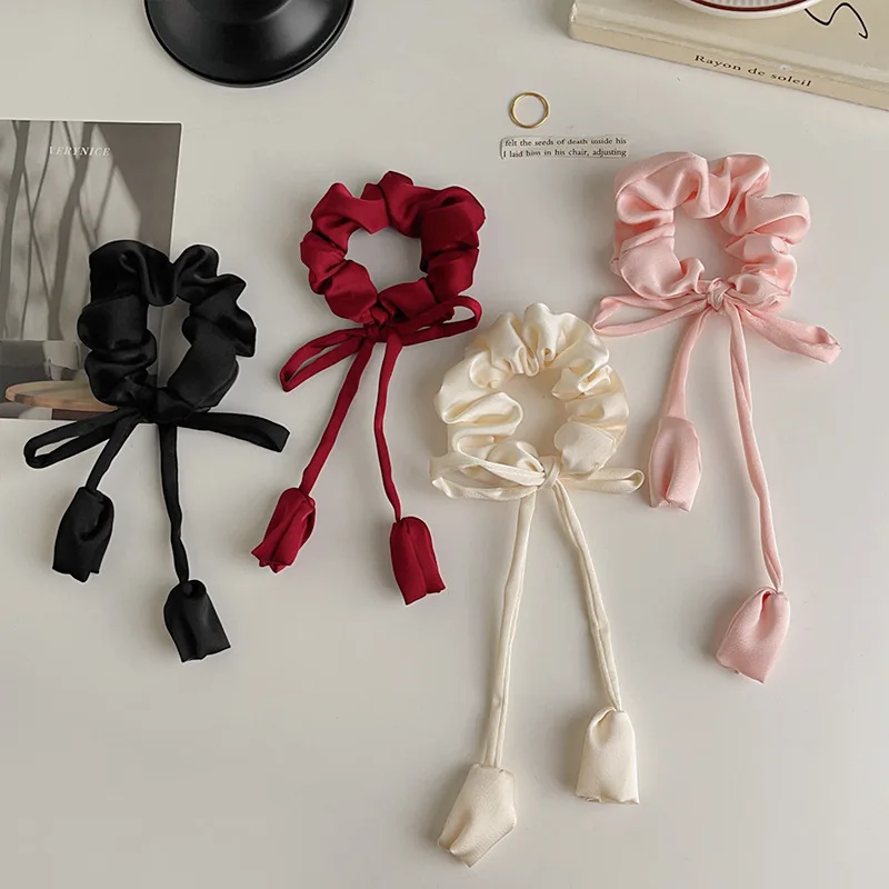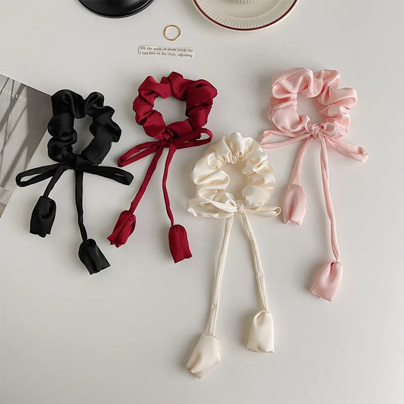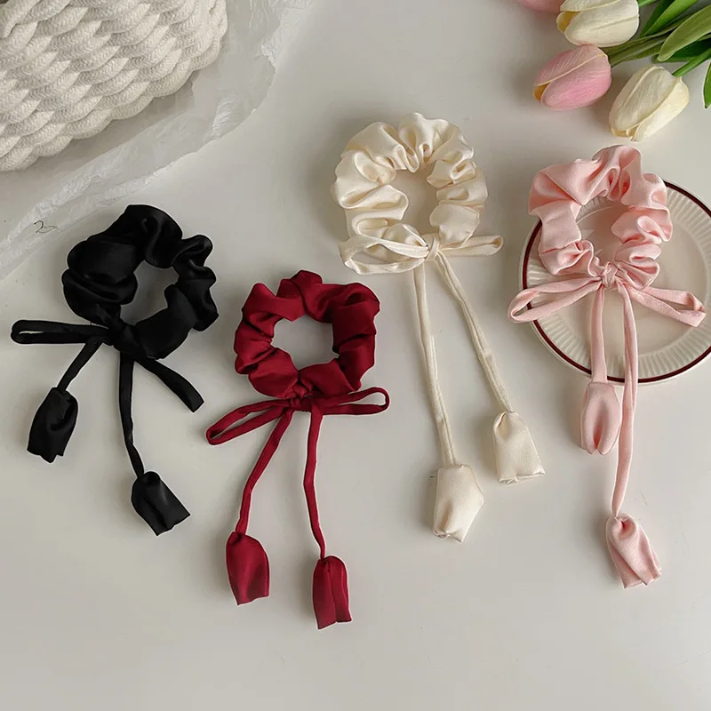 Diademas bonitas de tulipán para mujer y niña, lazos para el cabello de estilo pijo coreano, coleteros elegantes, accesorios para el cabello con lazo y flores