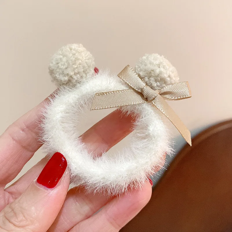 Diademas de Color café con leche, oso de peluche de peluche para niños, bandas de goma, bonito lazo de peluche Kawaii, accesorios para el cabello para niñas pequeñas