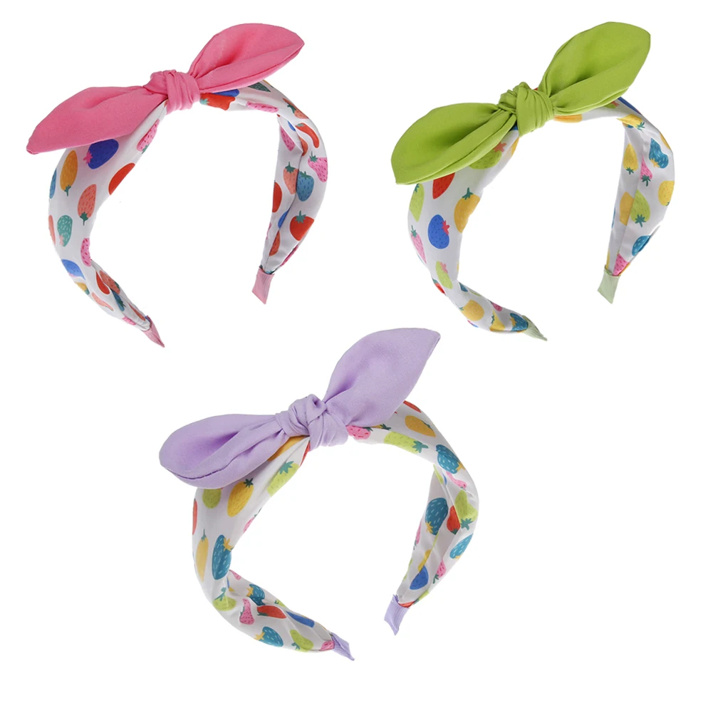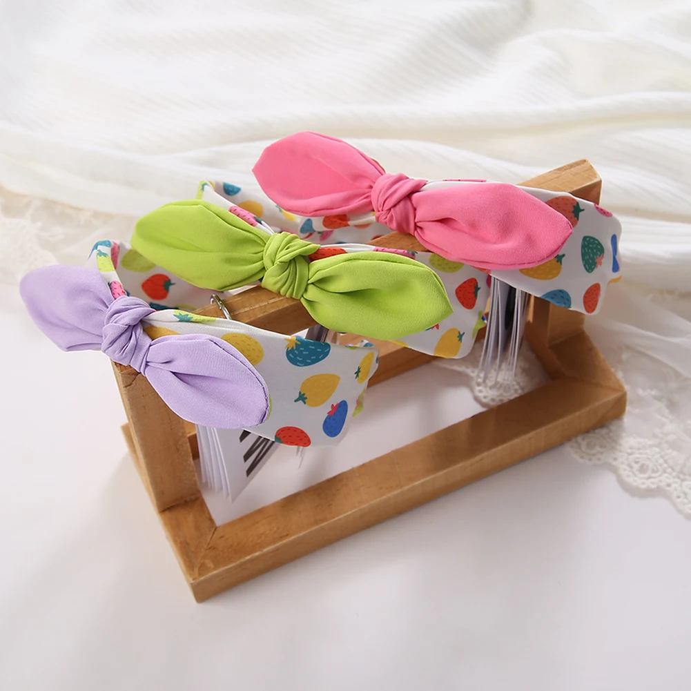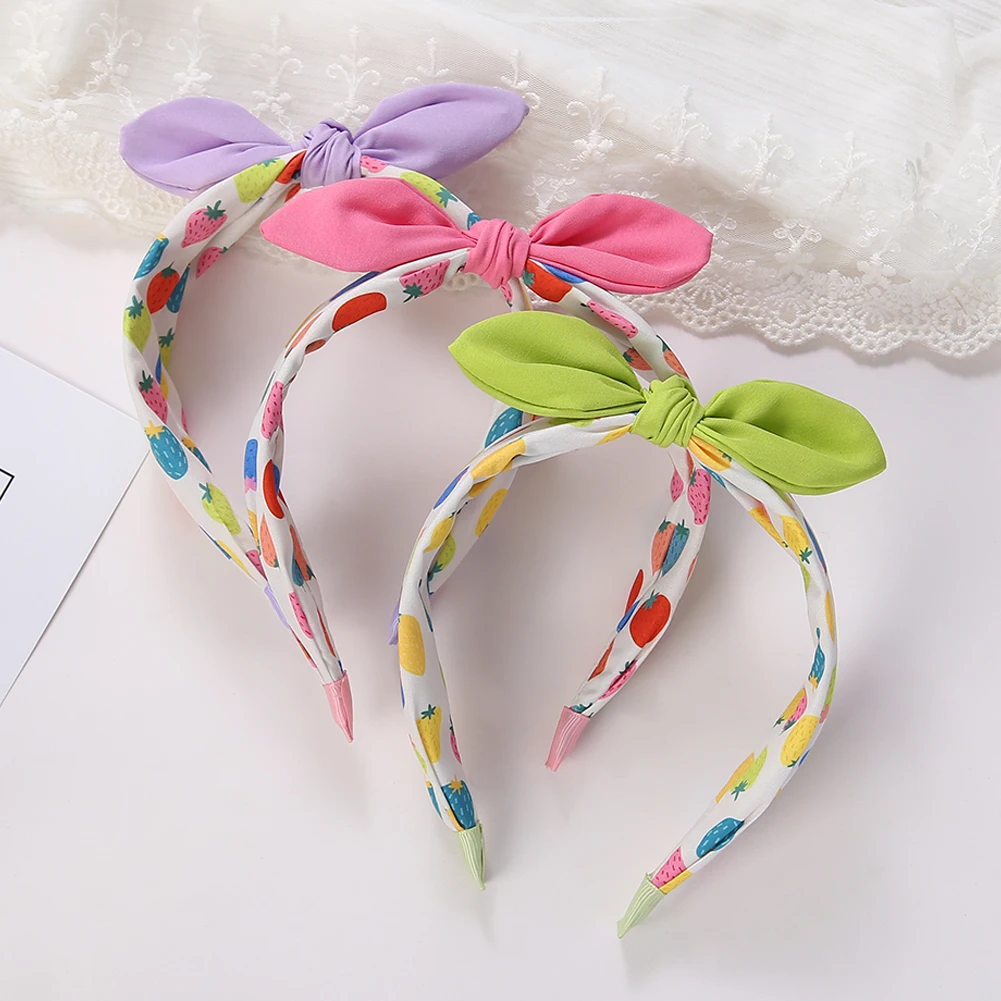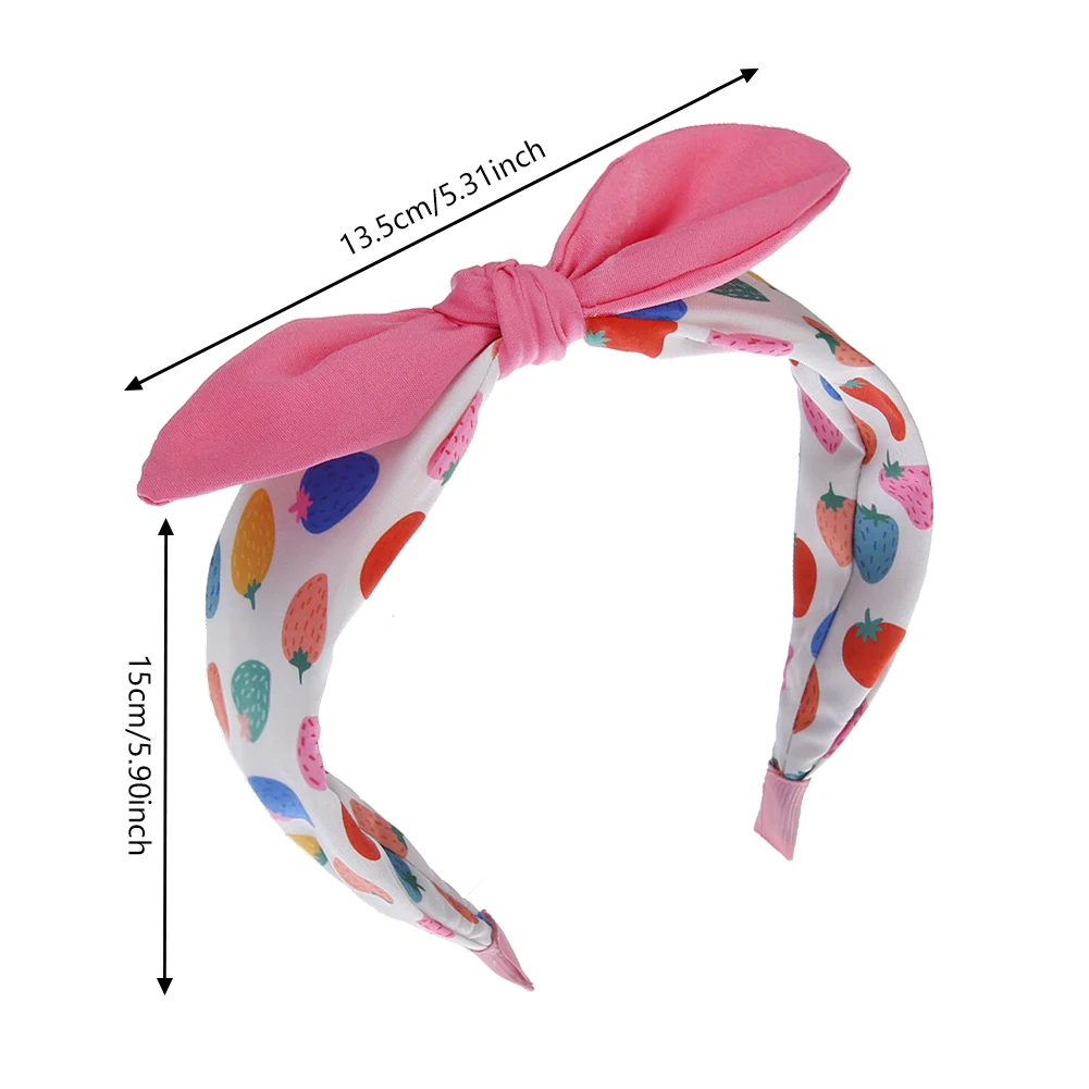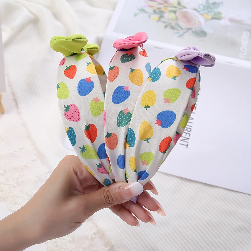 Comprar Diademas coreanas con lazo de fresa para niña, diadema ancha con Orejas de conejo, tela para el pelo, diademas para niña