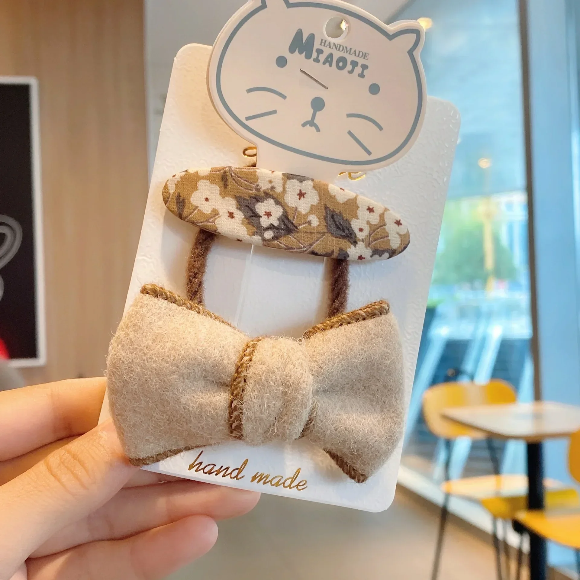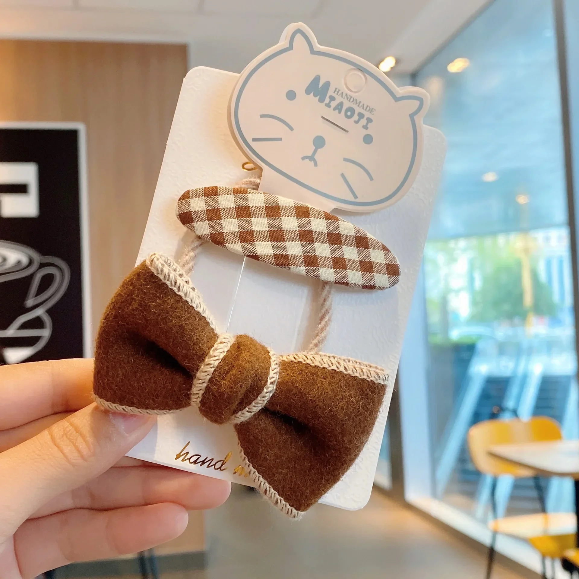 Diademas elásticas con lazo de 5 colores, pinzas para el cabello con estampado Floral a cuadros, moda coreana, tocado Vintage, accesorios para el cabello para niña y niño, café