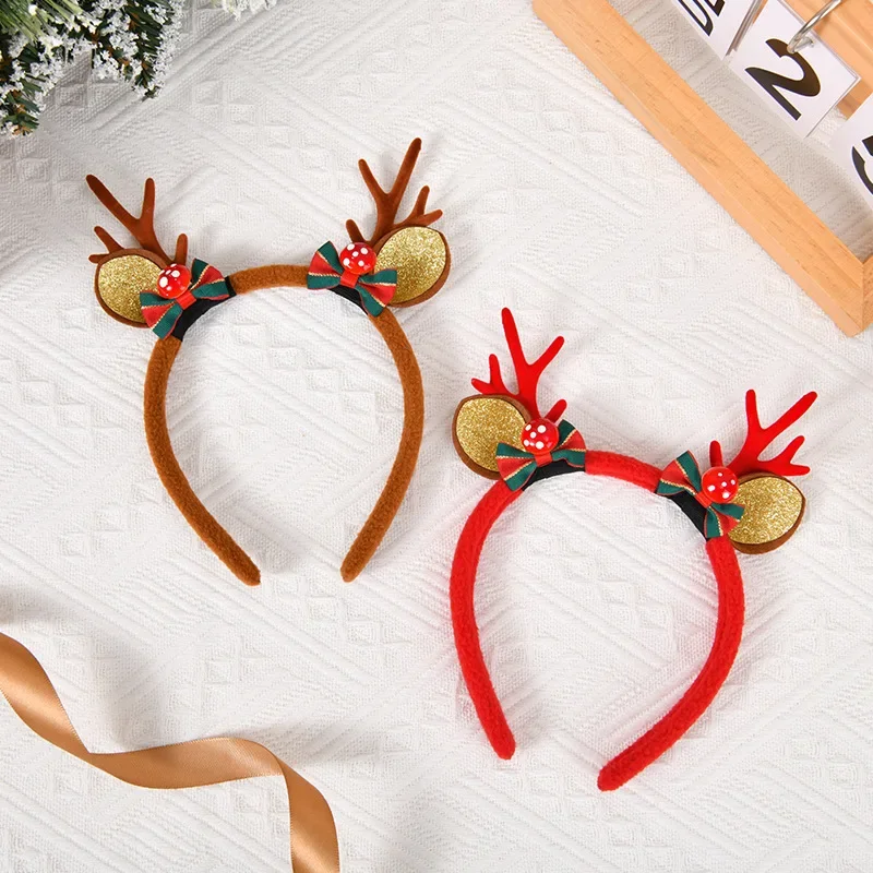 Comprar Diademas de felpa para mujer, accesorios para el cabello de bosque de Navidad, pinzas para el cabello de cuerno de ciervo lindo, aros, pinzas para el cabello para el Día de los niños, flequillo