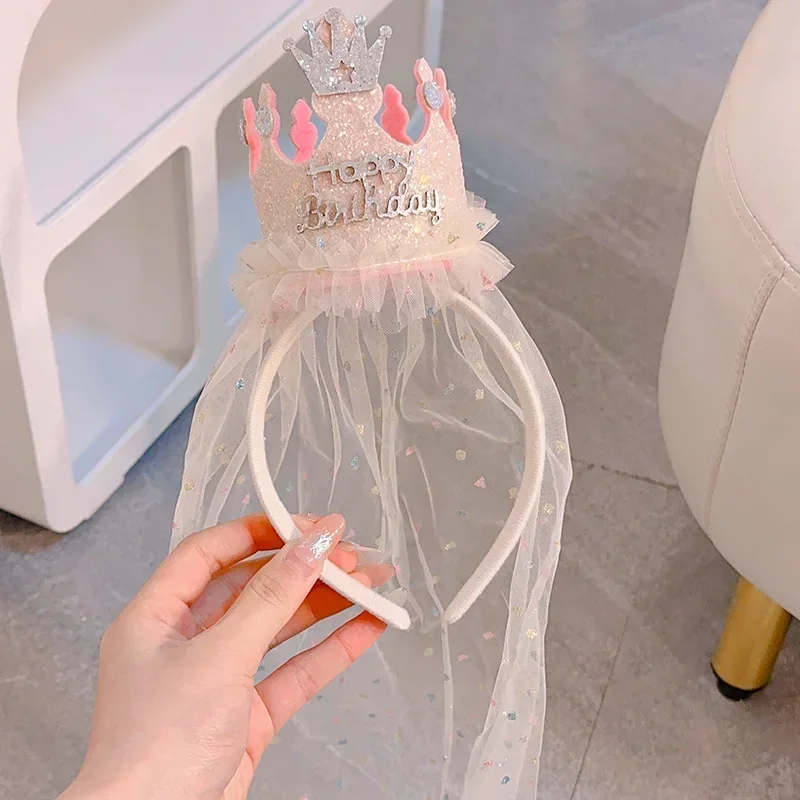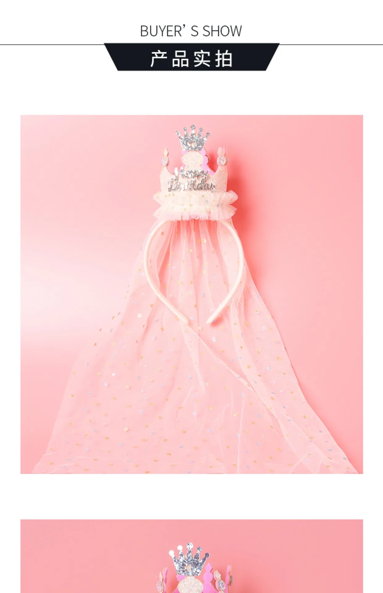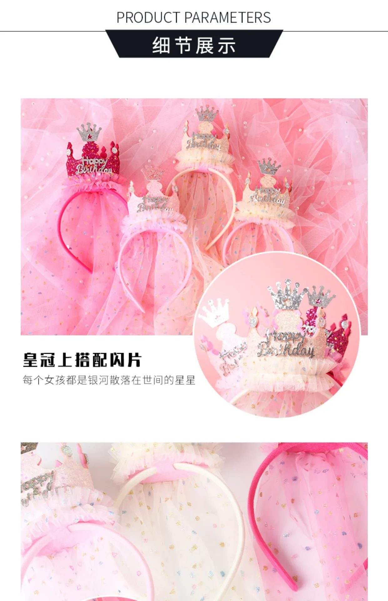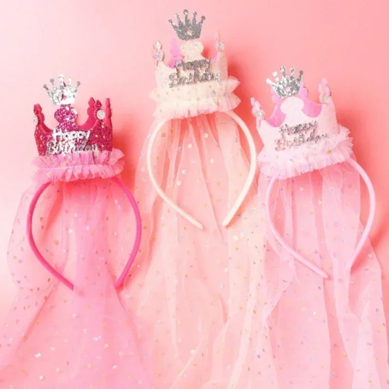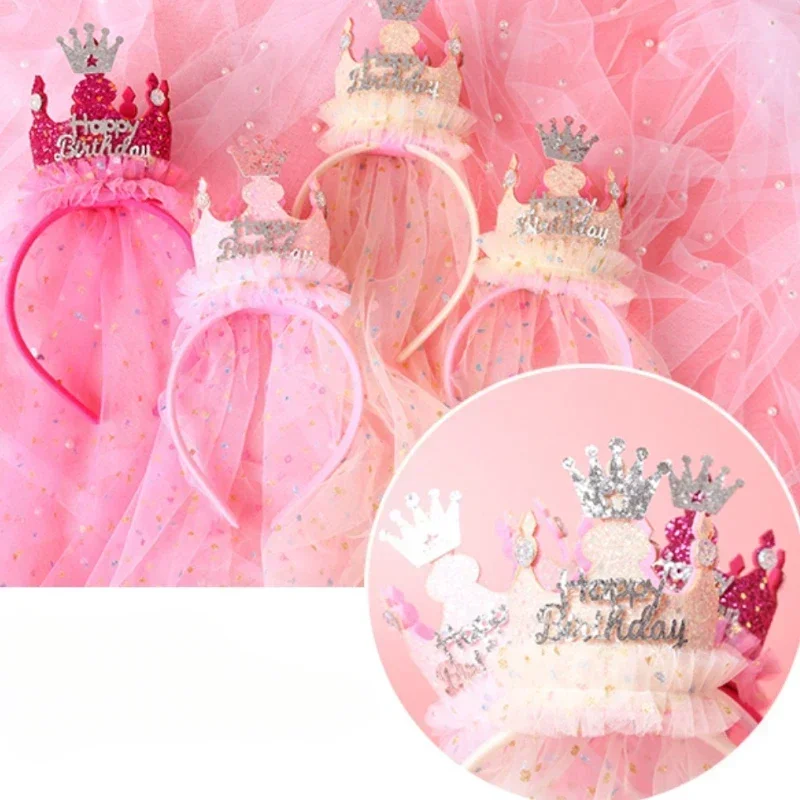 Comprar Diademas de gasa de corona para niñas, fiesta de cumpleaños, sombrero de princesa dulce, accesorios para el cabello, regalos sorpresa para niños