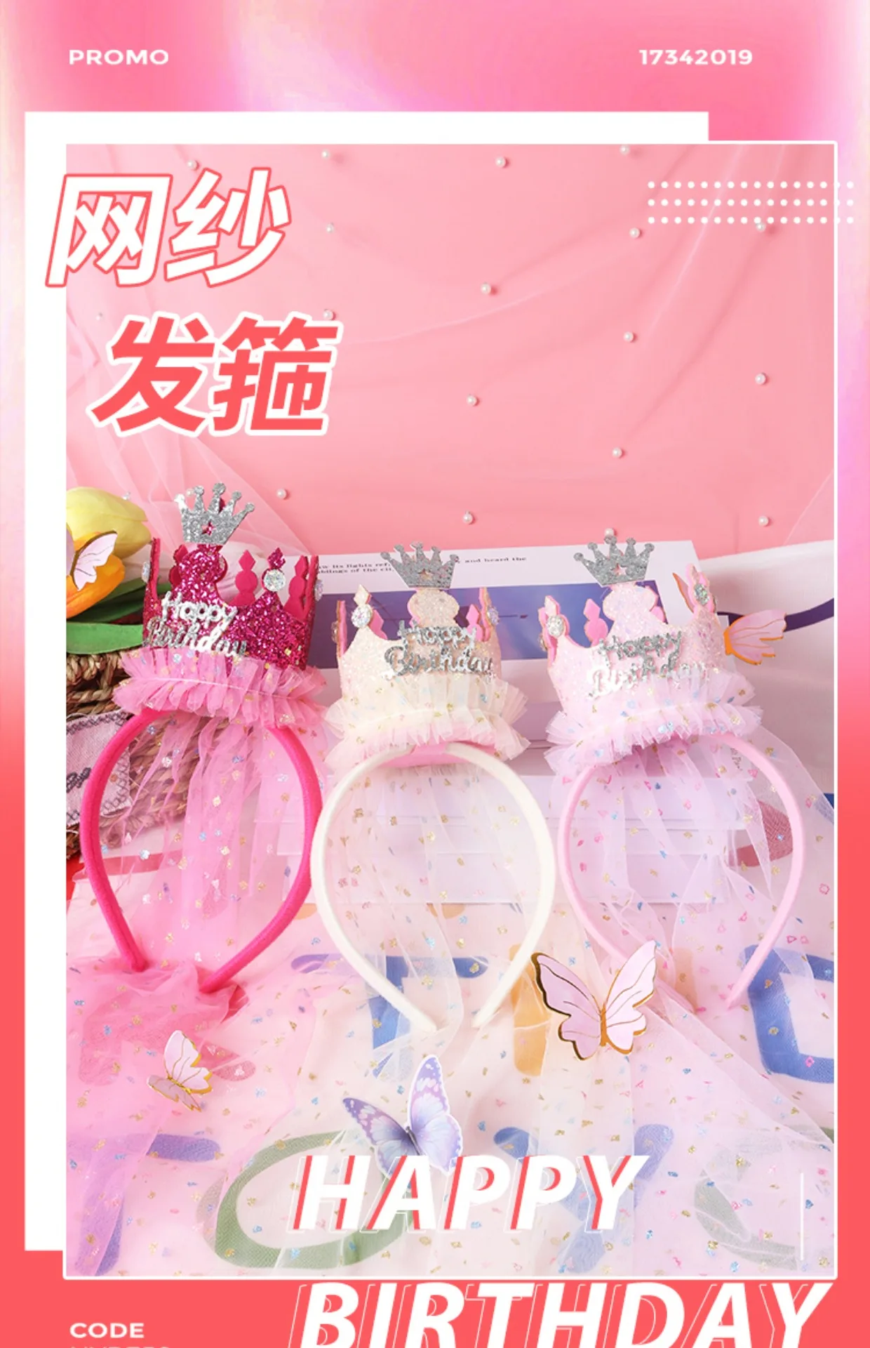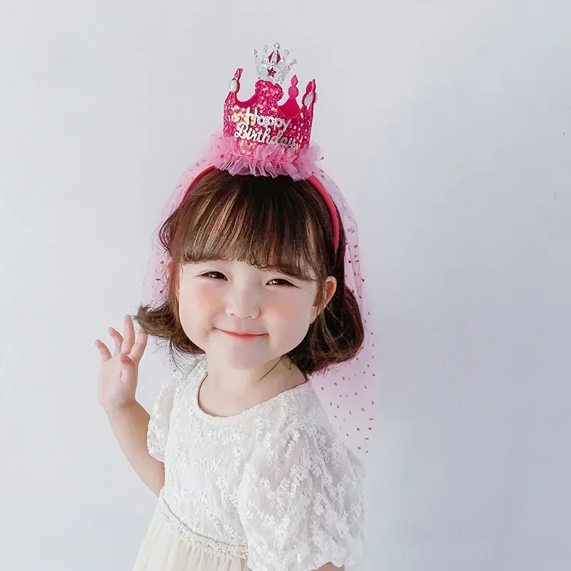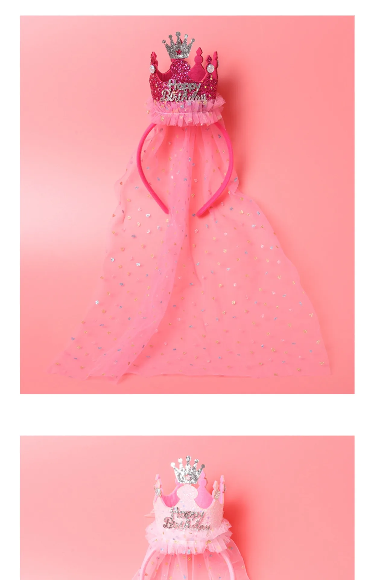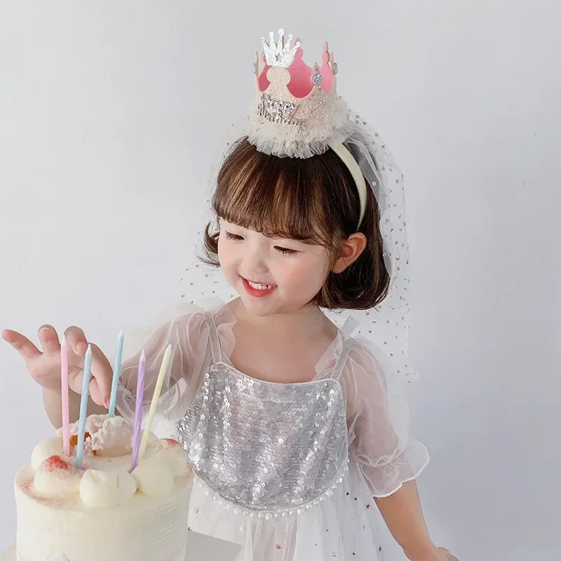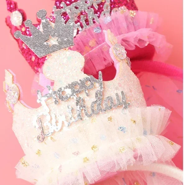 Comprar Diademas de gasa de corona para niñas, fiesta de cumpleaños, sombrero de princesa dulce, accesorios para el cabello, regalos sorpresa para niños
