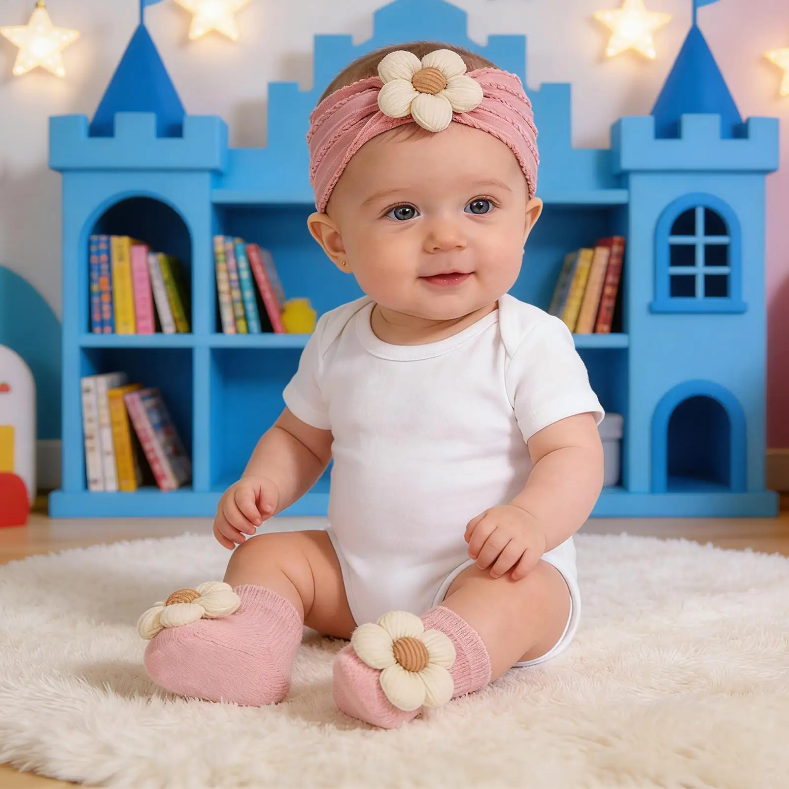 4.Adorable traje de sesión fotográfica: este combo de calcetines y diadema para niños mejora la creatividad al permitir una coordinación perfecta de estilos, brindando comodidad y encanto para el uso diario o capturando instantes preciados en entornos de fotografía temática con un atractivo que llame la atención.