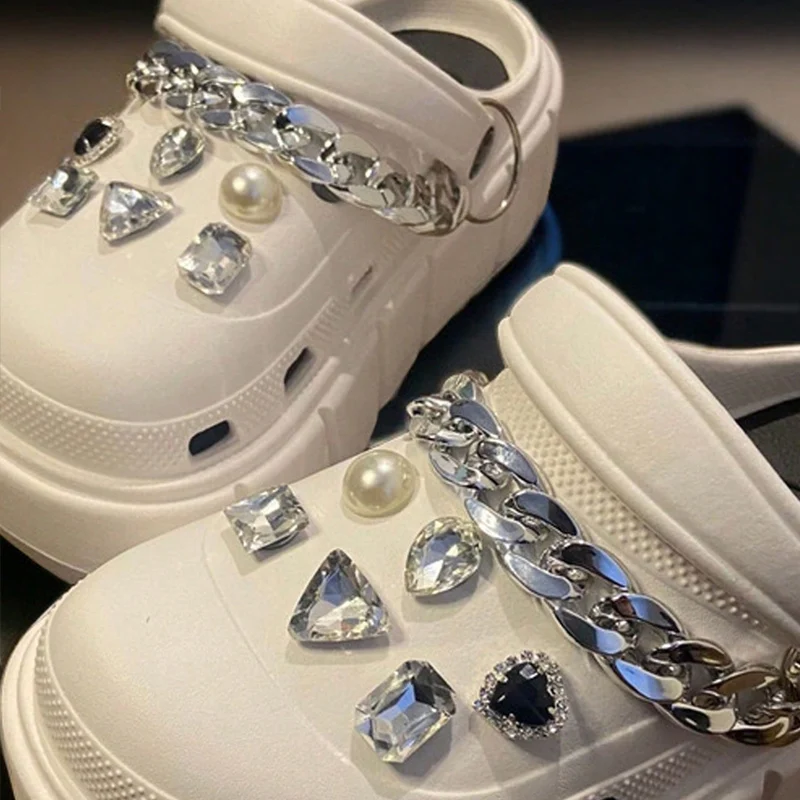 Dijes de diamantes de imitación brillantes para zapatos, accesorios de cadena para zapatillas, zuecos, 14 piezas