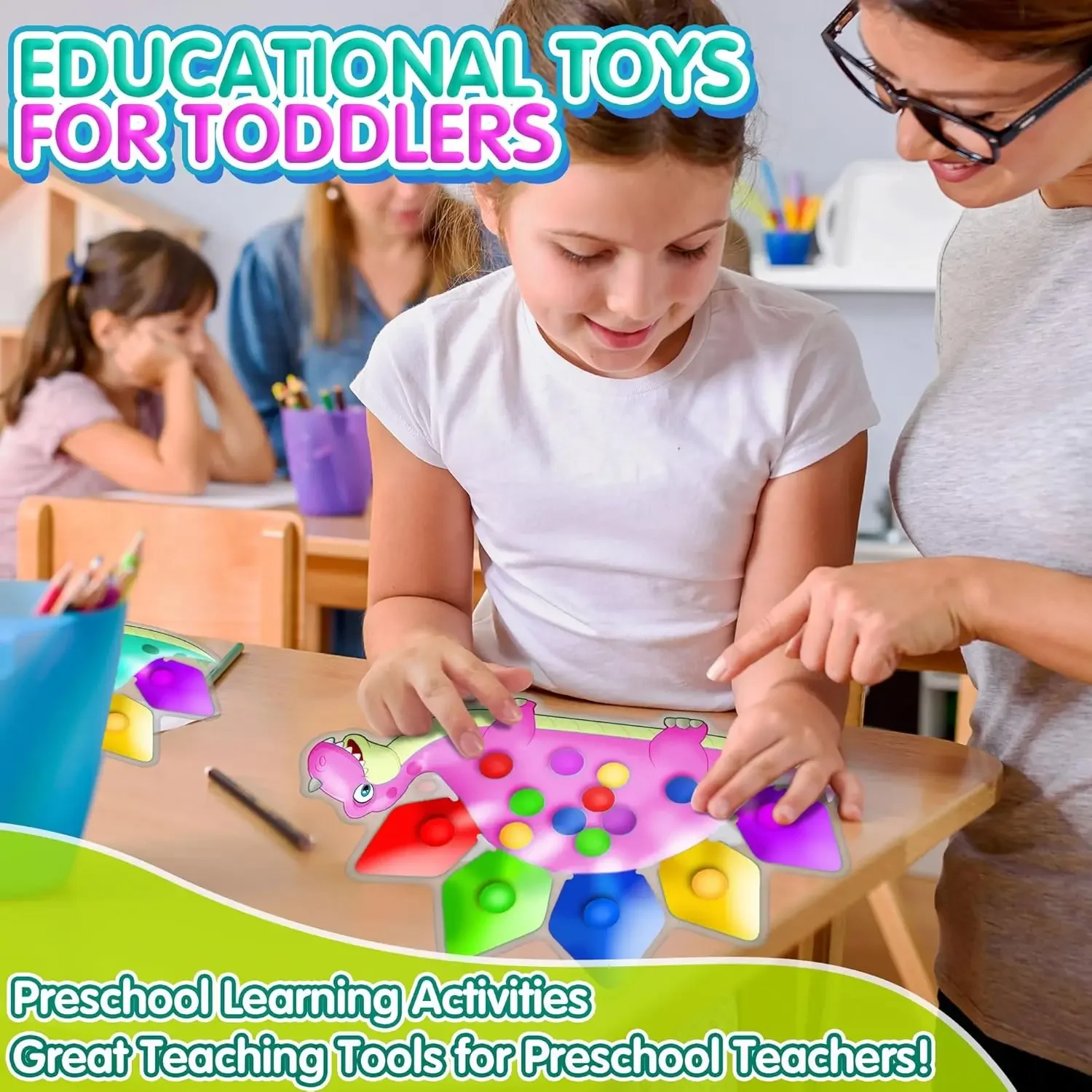 [Juegos de combinación de clasificación de colores] Estos juguetes con forma de dinosaurio podrían ayudar a los niños en edad preescolar a aprender diferentes colores y matemáticas tempranas empujando las cuentas de colores hacia las posiciones de color correctas.Este juguete clasificador sería una excelente herramienta educativa preescolar para niños y niñas de 3 a 4 años.
