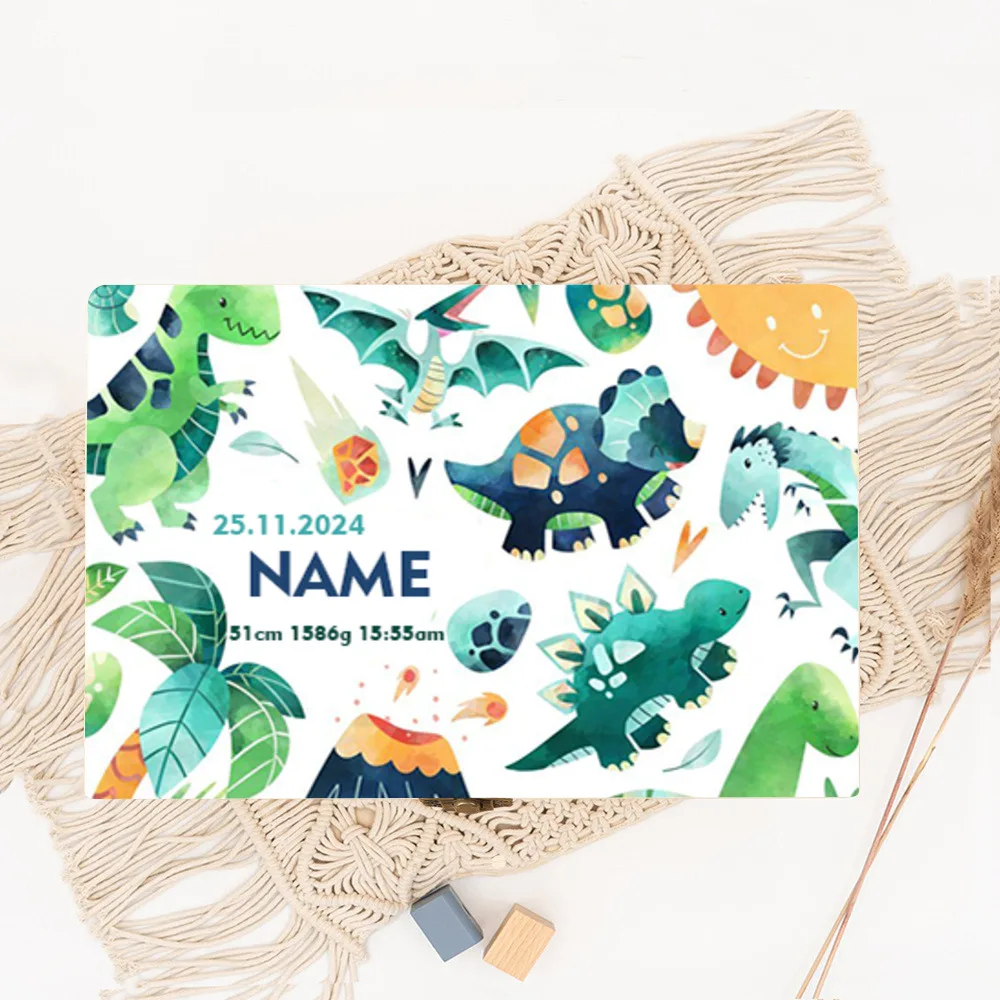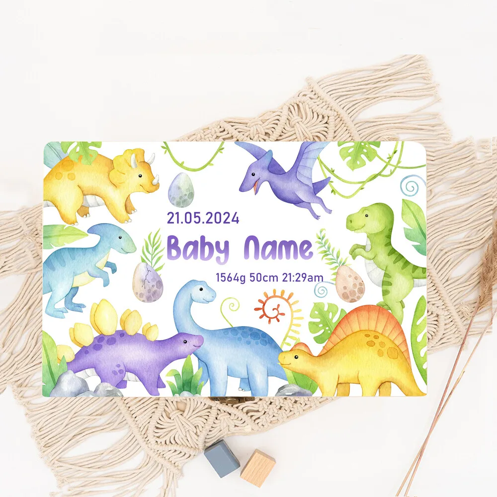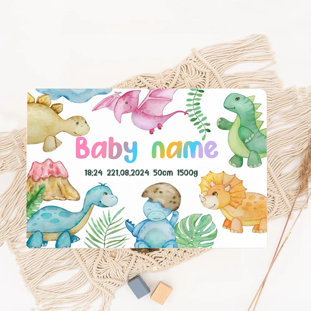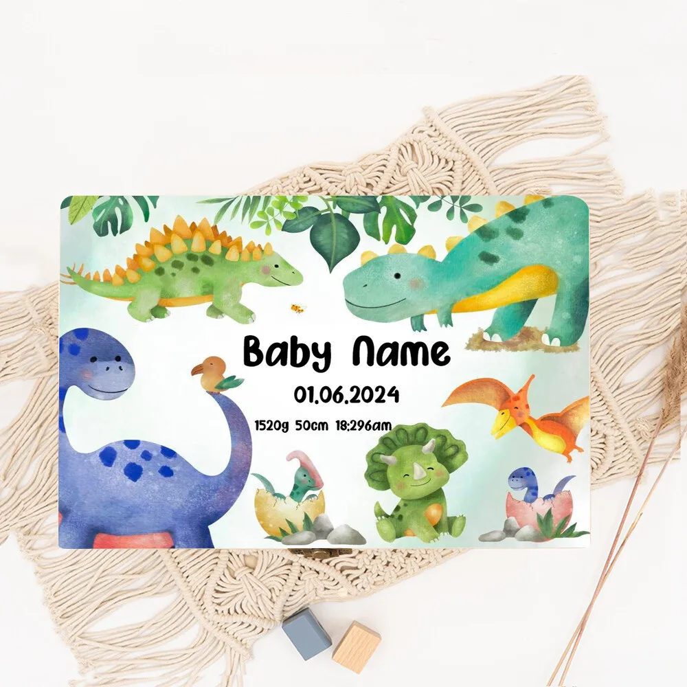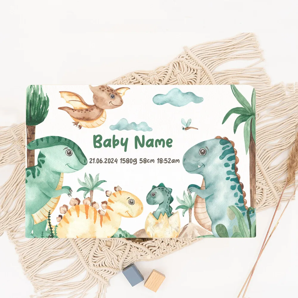 Dinosaurio personalizado con nombre, caja de memoria de madera para bebé, regalo de ducha para recién nacido, recuerdo, caja de estadísticas de nacimiento infantil, cajas de cordón umbilical Estas cajas de madera están personalizadas con estampados como letras de animales de dibujos animados y arcoíris, lo que las hace perfectas para regalar bolsas a niños y niñas,