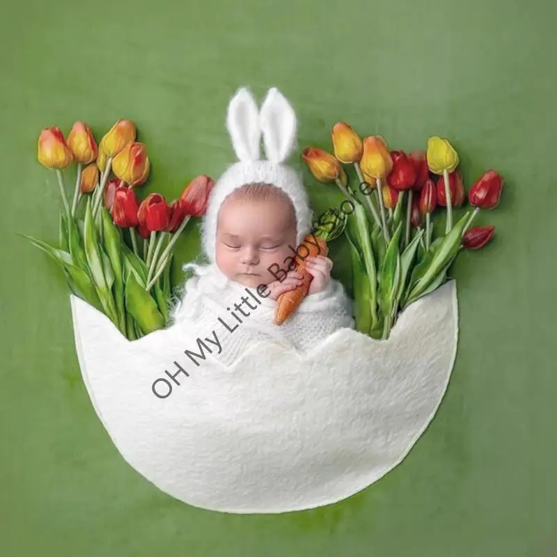 El paquete incluye:1 manta con forma de cáscara de huevo para fotografía de recién nacidos con fondo