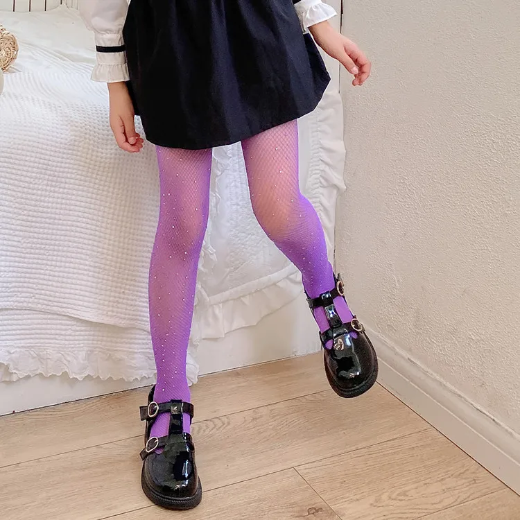 Disfraz de actuación ajustado de rejilla elástica con diamantes brillantes para niñas, pantimedias de malla de princesa para bebé, mallas brillantes