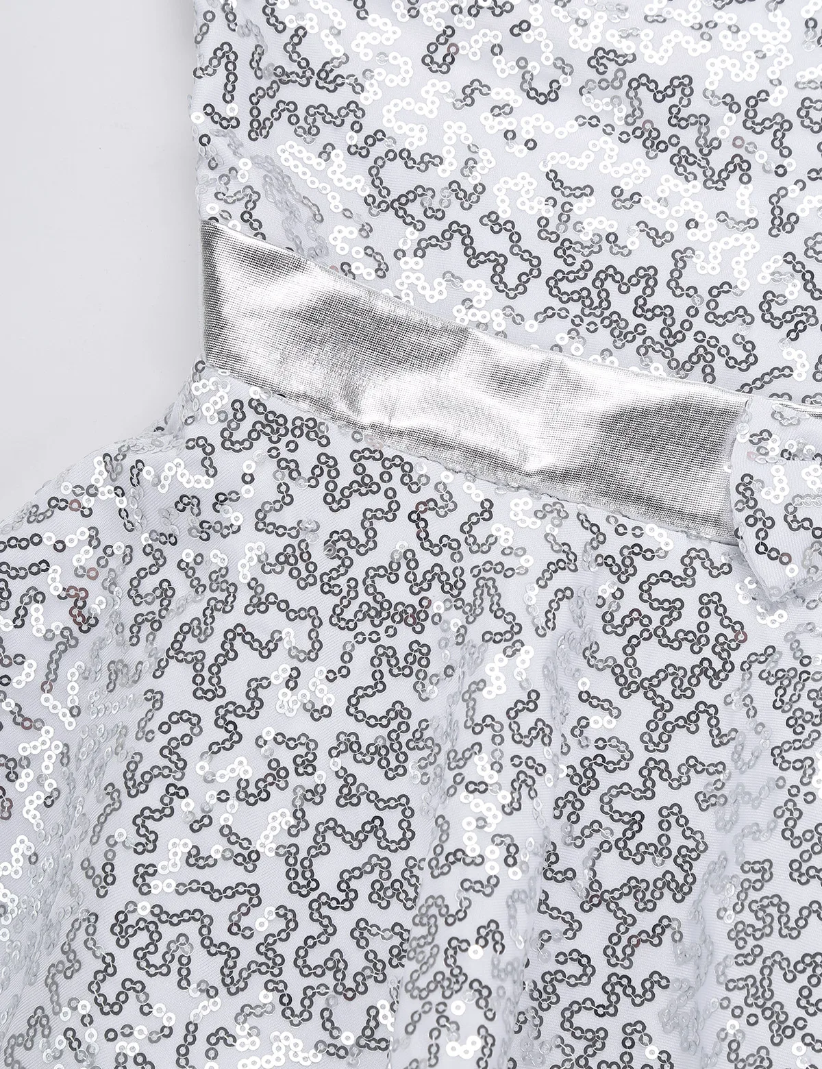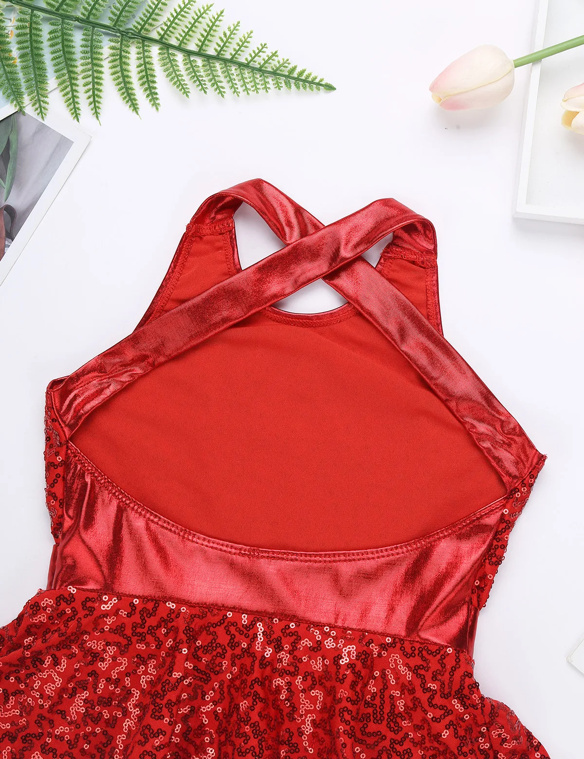 El vestido de leotardo de baile está hecho de poliéster y material de lentejuelas, lavado a mano.