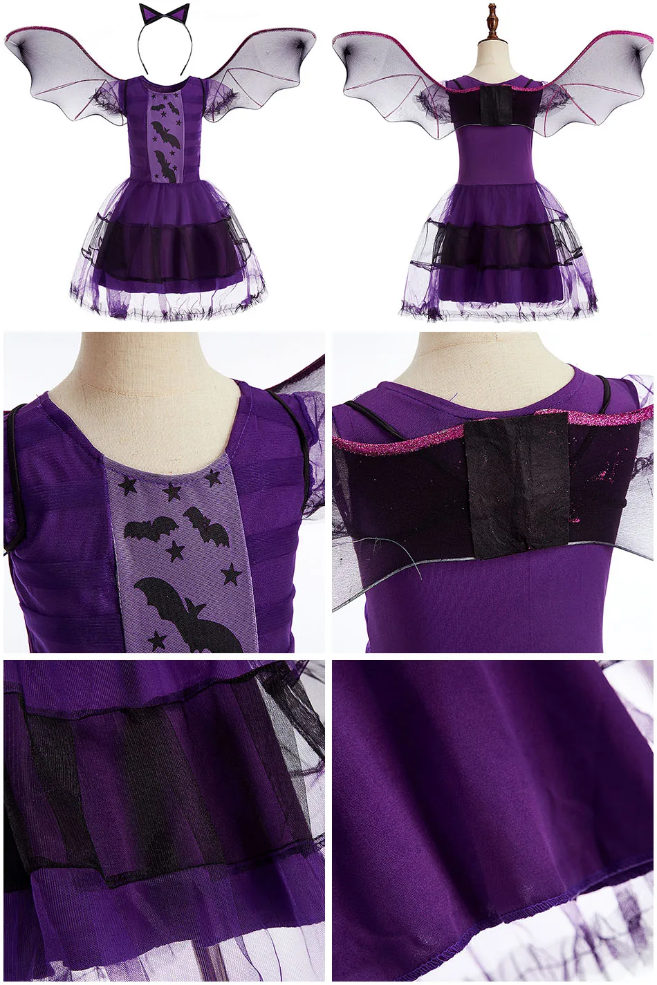 Nombre del vestido: disfraz de calabaza para bebé, vestido de desfile de princesa para niñas, ropa elegante de actuación de vampiros para niños, Pelele de Halloween de bruja de 1 a 12 años