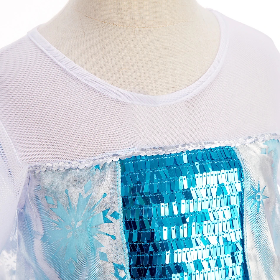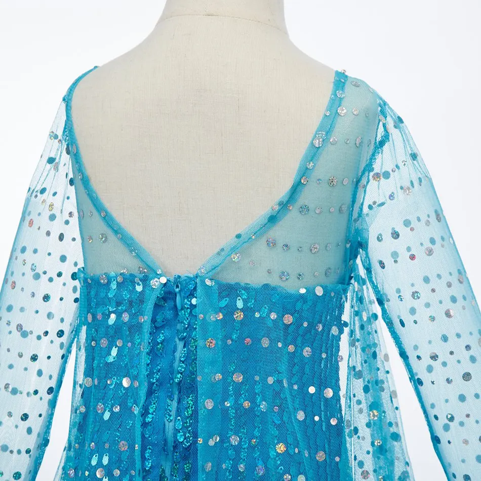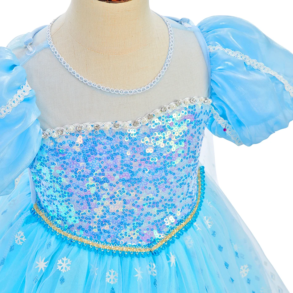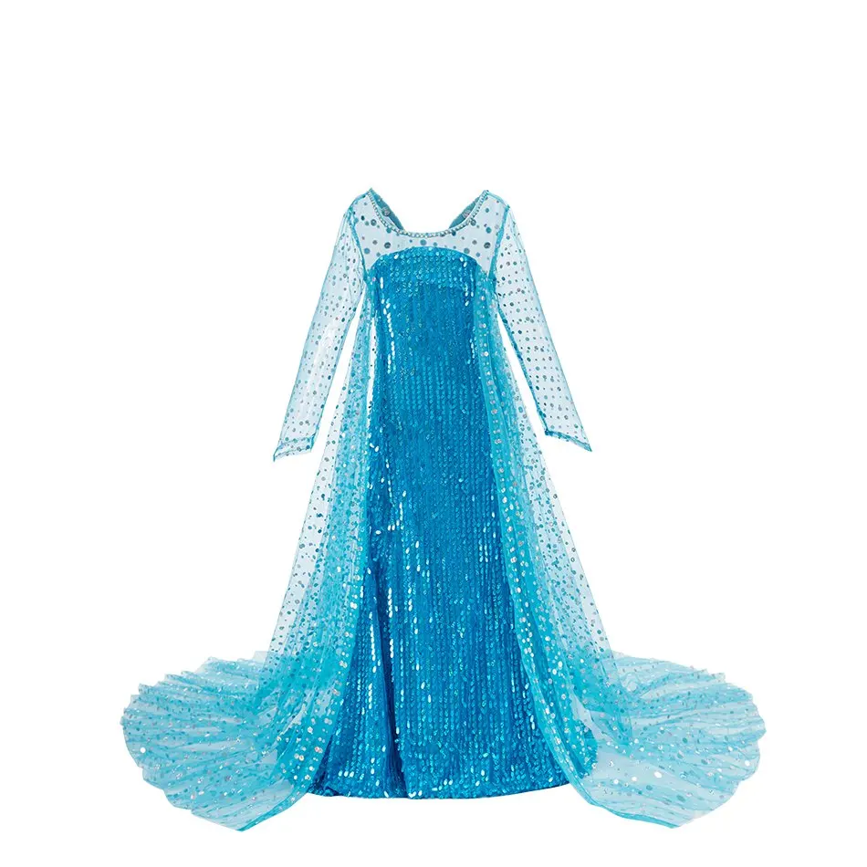 Nombre del vestido: Disfraz de princesa de lujo elegante para niñas, ropa para fiesta de cumpleaños de Halloween, vestido de Cosplay Elsa de lentejuelas azules de Carnaval para niños