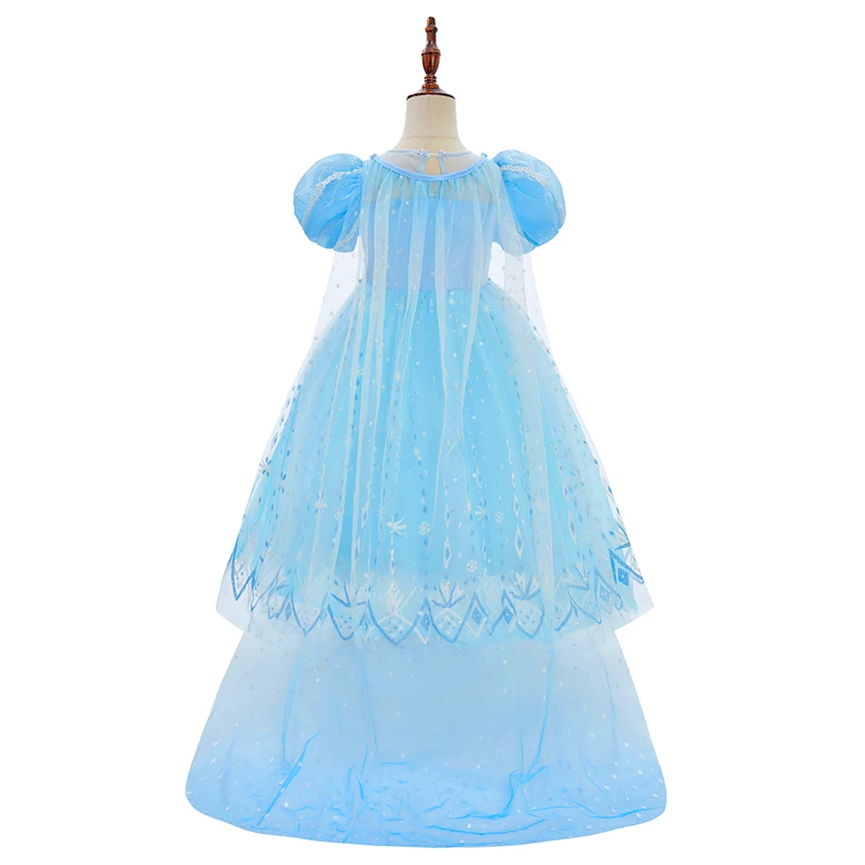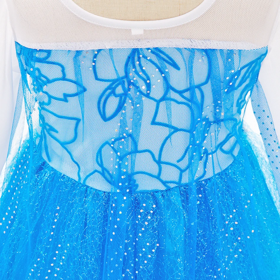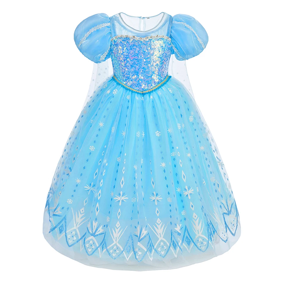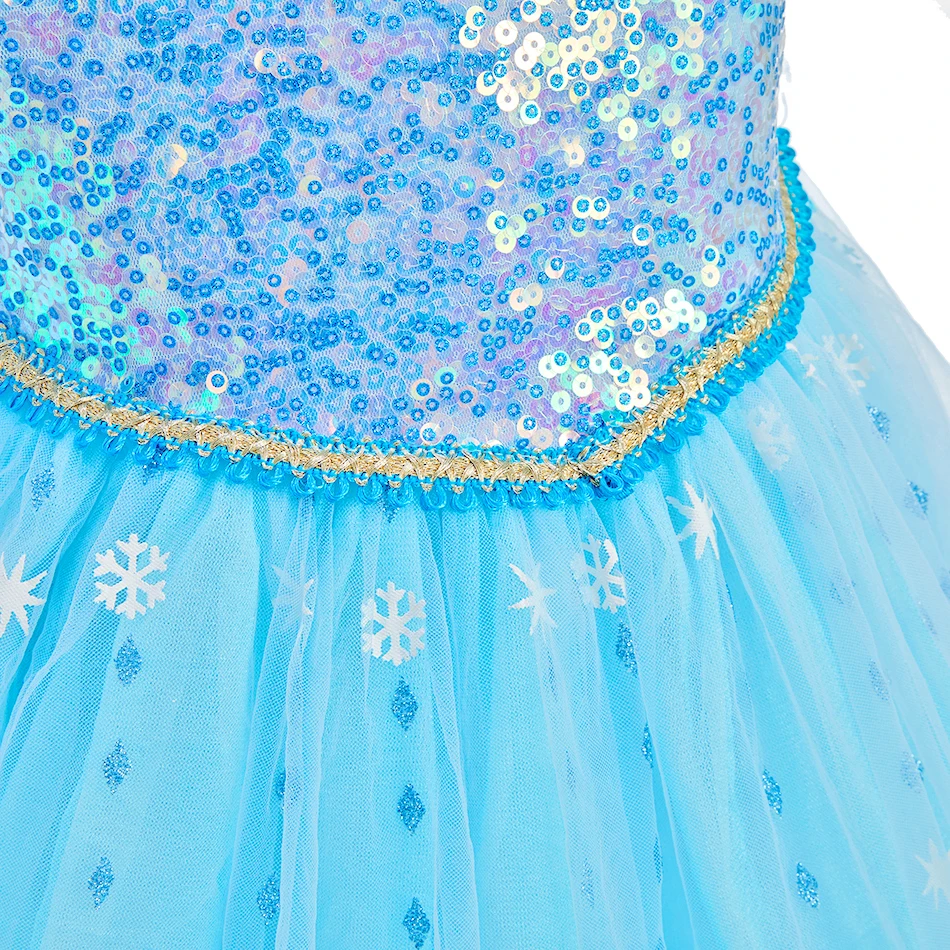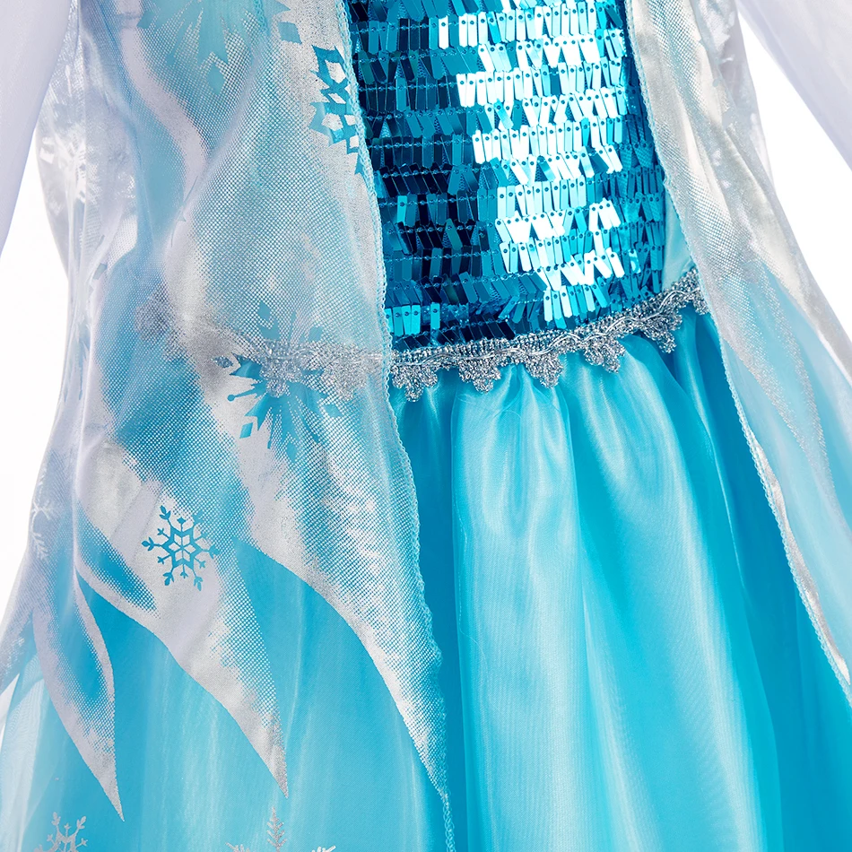 Nombre del vestido: Disfraz de princesa de lujo elegante para niñas, ropa para fiesta de cumpleaños de Halloween, vestido de Cosplay Elsa de lentejuelas azules de Carnaval para niños