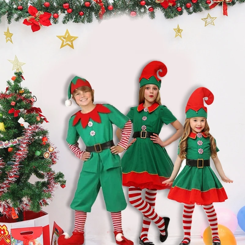 Este vestido de elfo de vacaciones se destacará con tela fácil de llevar, durabilidad y atención al detalle.