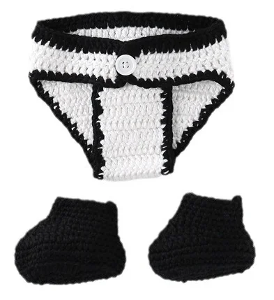 Comprar Disfraz de fotografía de bebé tejido a mano, conjunto de tres piezas de Panda, accesorios de fotografía para bebé, fotografía de recién nacido, accesorios de fotografía Aby
