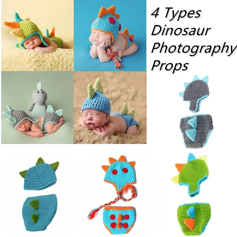 Comprar Disfraz de fotografía de punto hecho a mano para recién nacido, accesorios para fotos de bebé, ropa con forma de dinosaurio, traje de fotografía para recién nacido