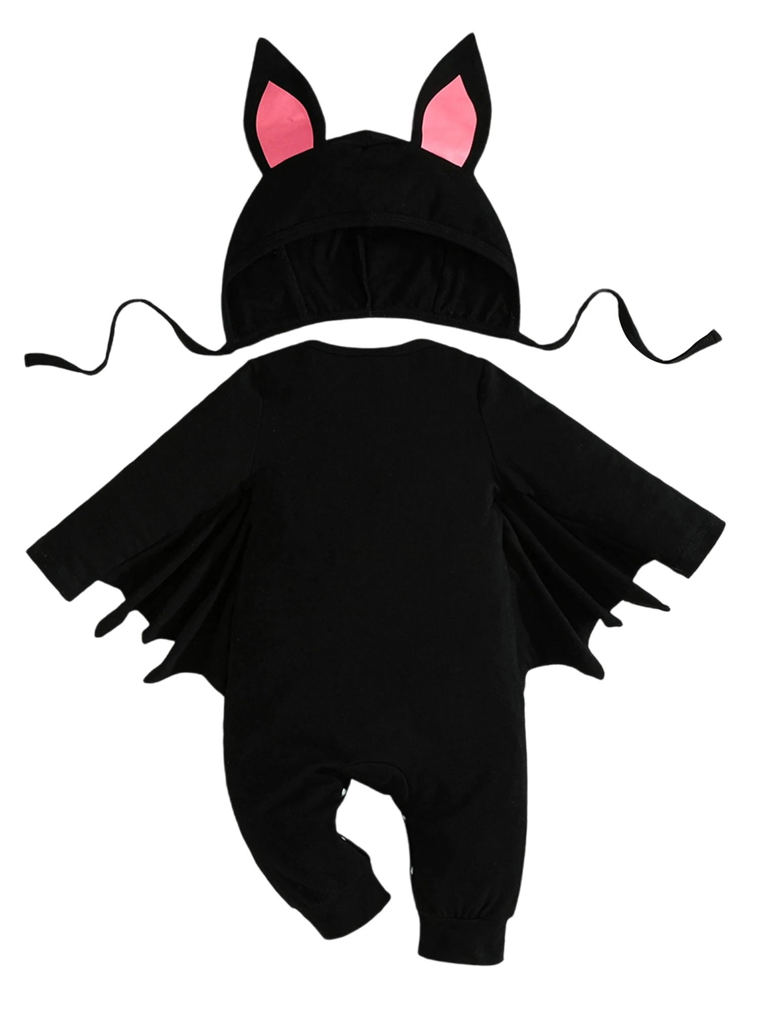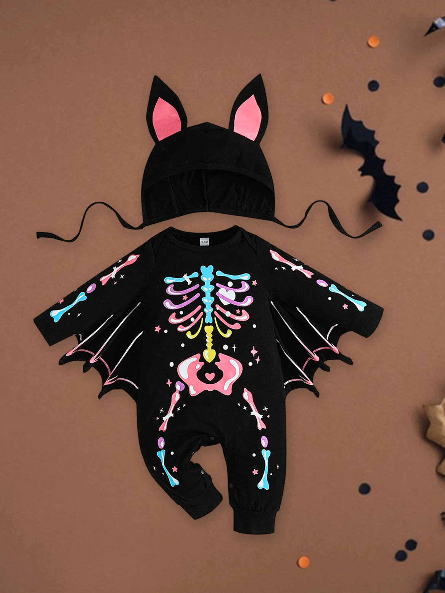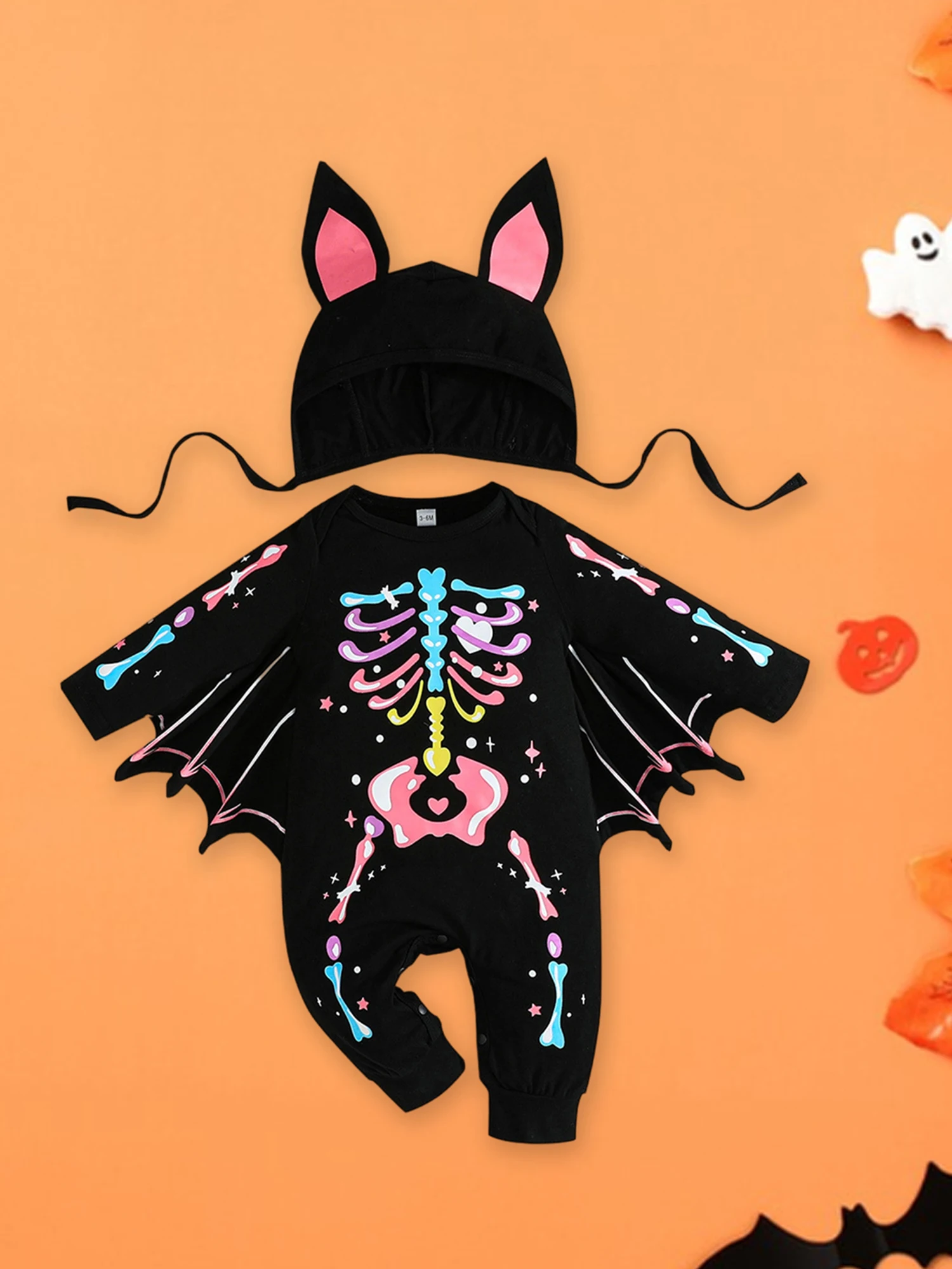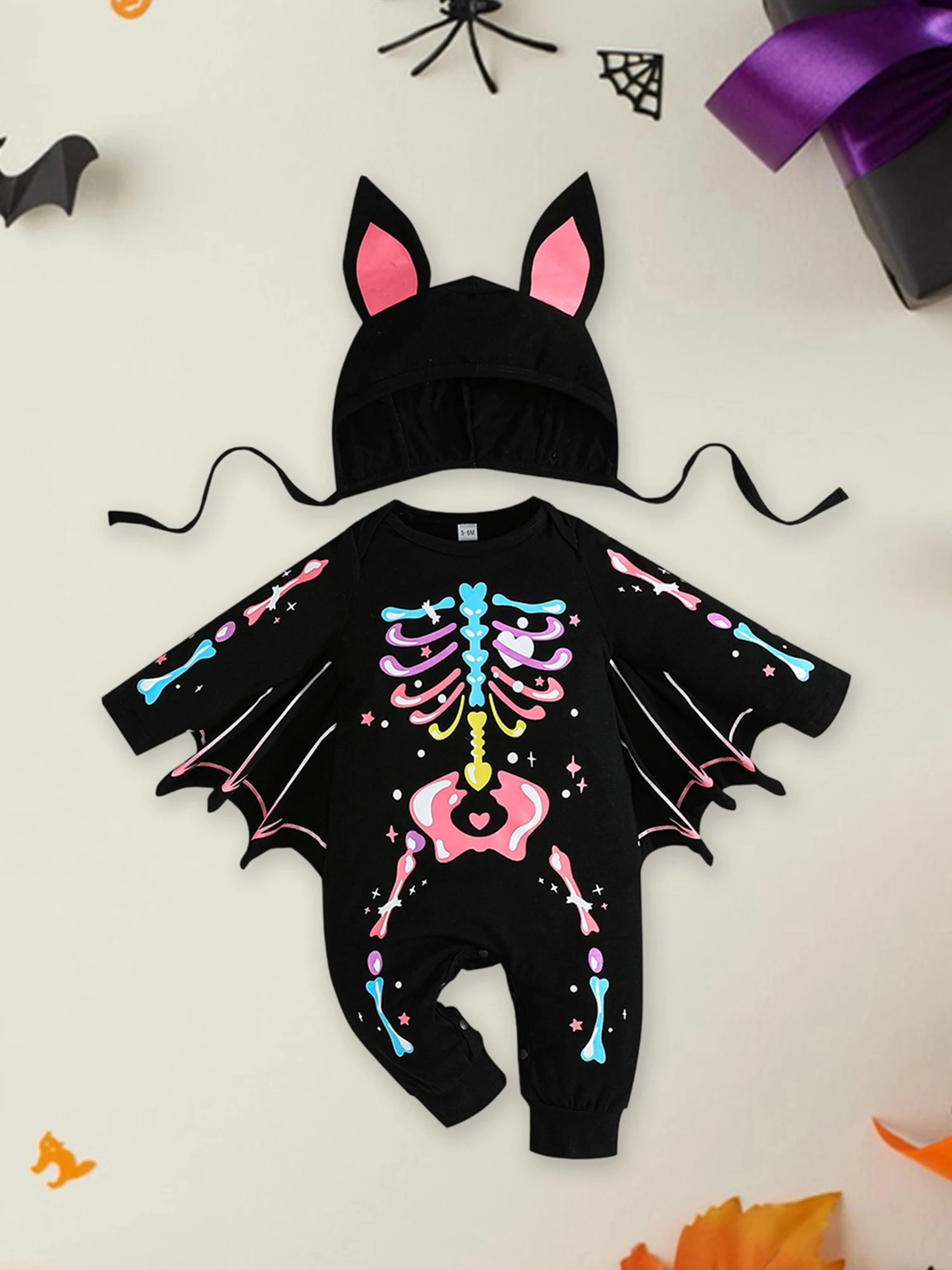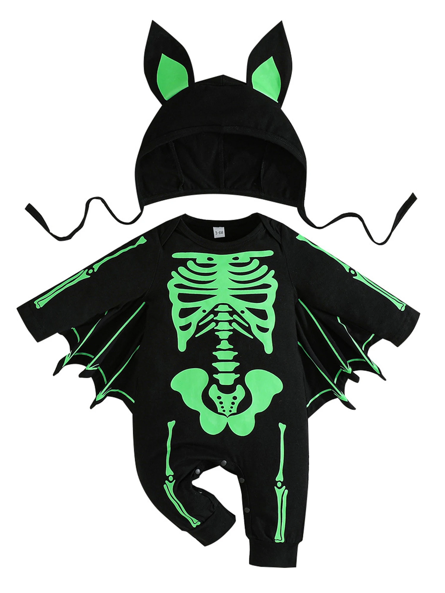 Comprar Disfraz de murciélago para bebé, mono de manga larga con estampado de esqueleto de Halloween a la moda y sombrero