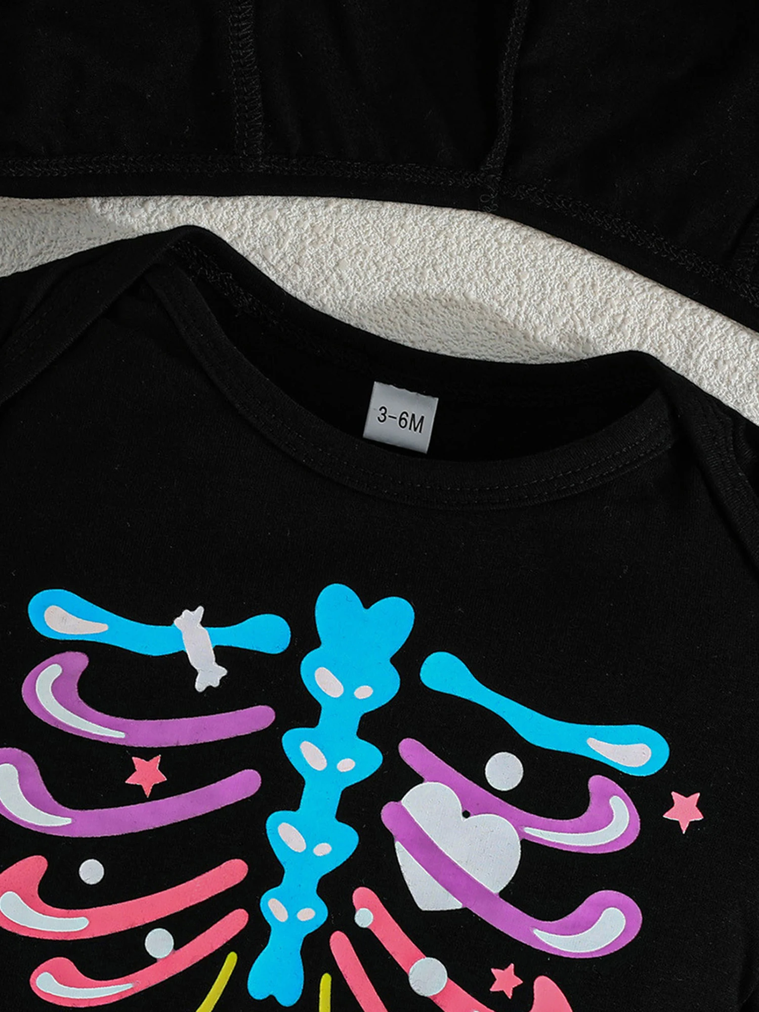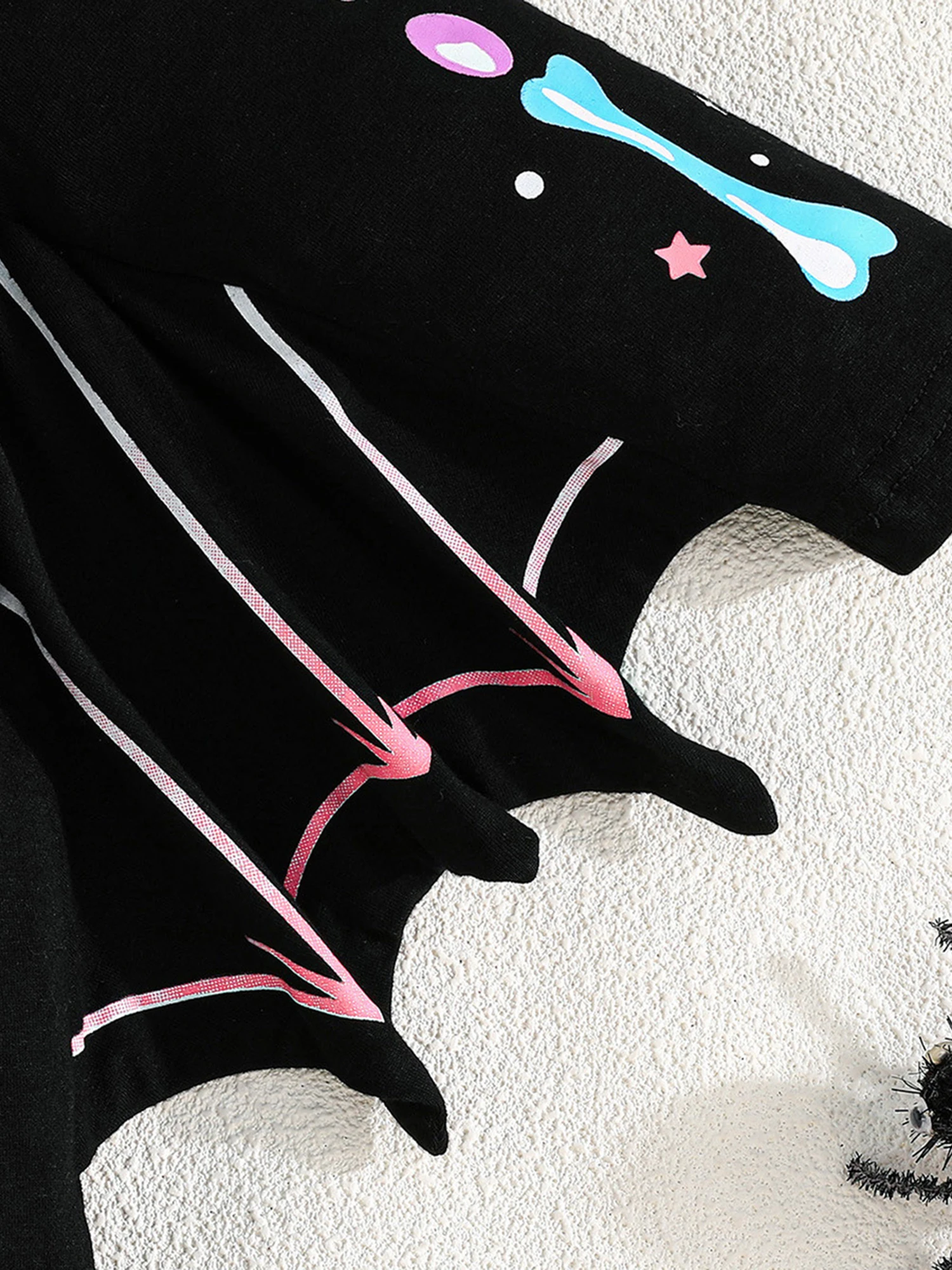 Disfraz de murciélago para bebé, mono de manga larga con estampado de esqueleto de Halloween a la moda con sombrero
