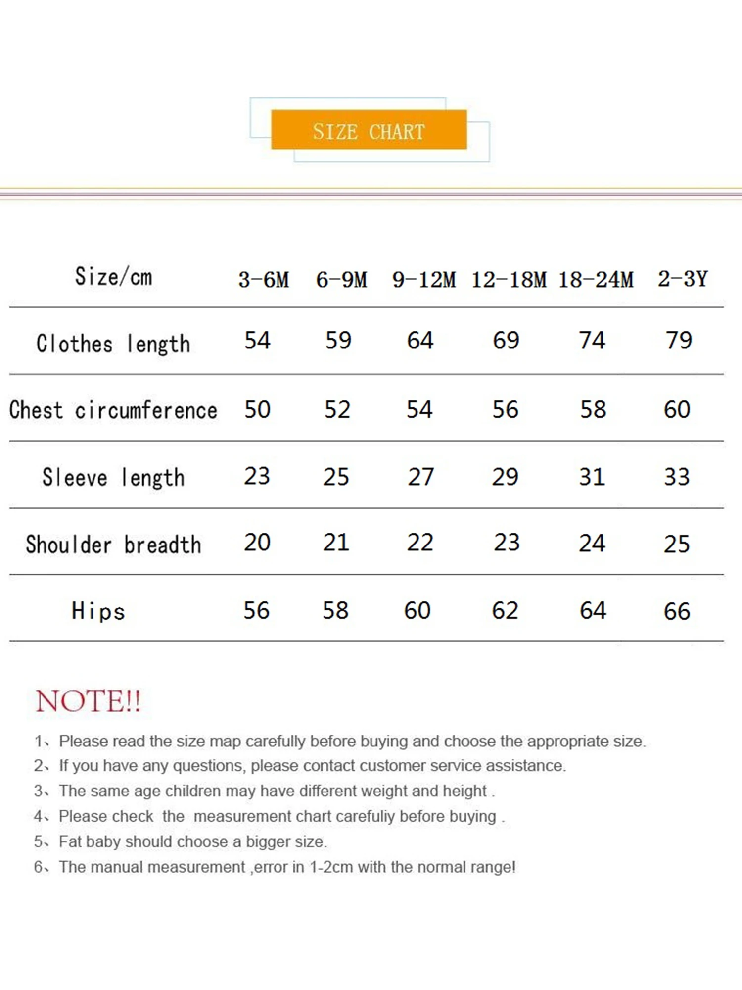 2-3Y Longitud: 79 Busto: 60 Manga: 33 Hombro: 25 Cadera: 66 Edad recomendada: 2-3 años