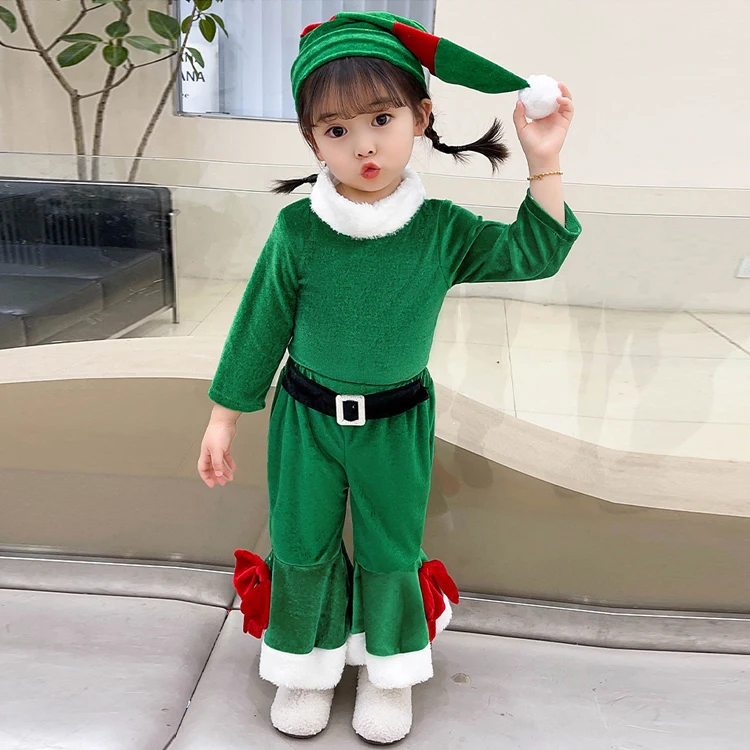 Comprar Disfraz de Navidad para niños y niñas, conjunto de ropa de Papá Noel para bebés pequeños, Top de manga larga, pantalones con campana inferior, trajes de Año Nuevo de 3 piezas