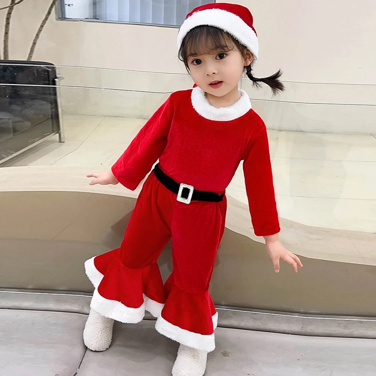1). Descripciones: Disfraz de Navidad para niños y niñas, conjuntos de ropa de bebé de Papá Noel, Top de manga larga, pantalones de campana, trajes de Año Nuevo de 3 años, para niños y niñas