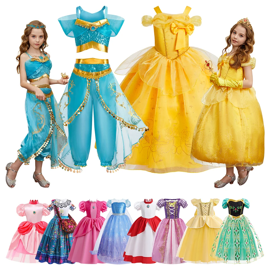 Comprar Disfraz de princesa para niñas pequeñas, Rapunzel, Anna, Bell Ball, ropa de lujo para carnaval, Vestidos de Cosplay para niños de 3 a 12 años