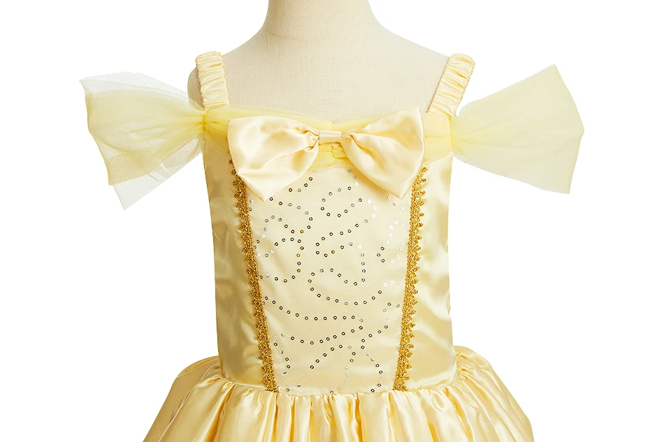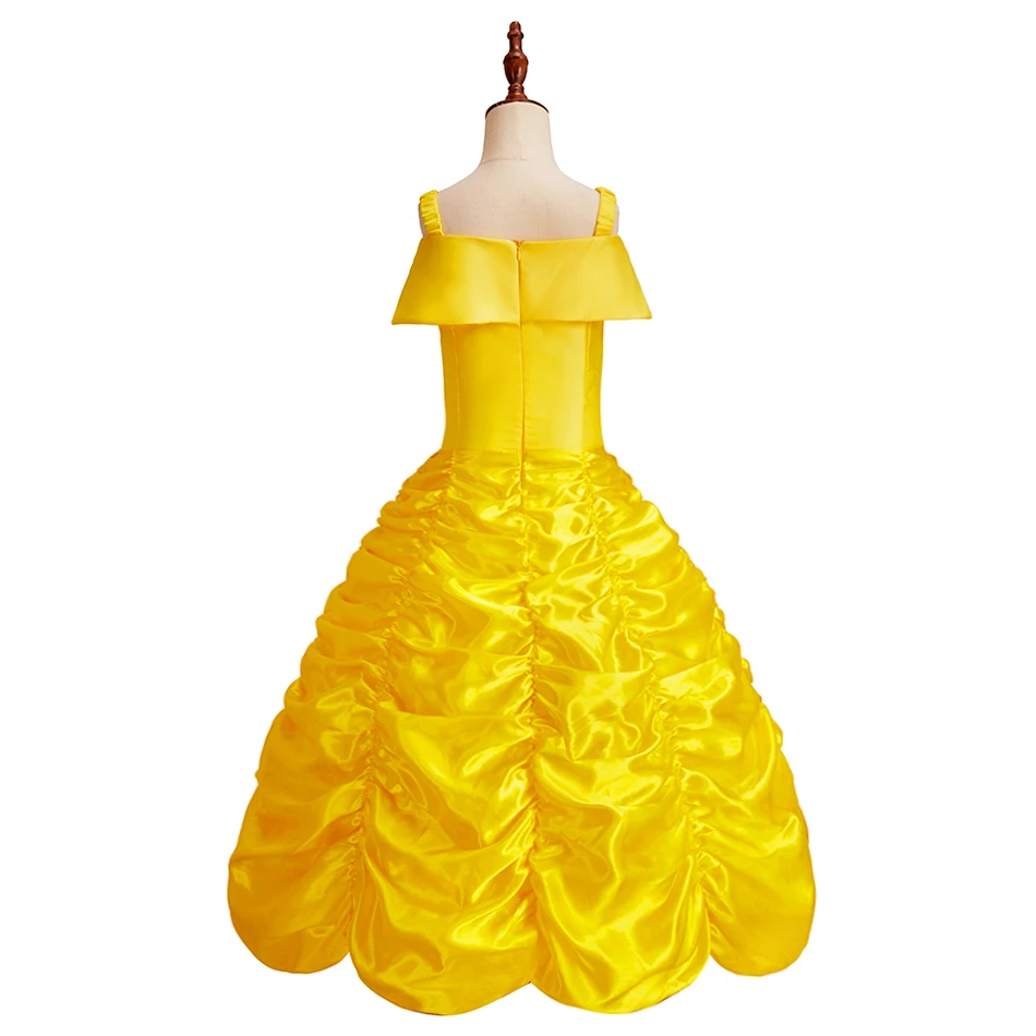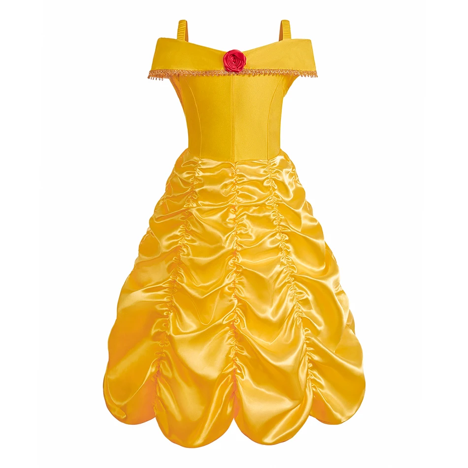 Nombre del vestido: Disfraz de princesa para niños, disfraz de Bella amarilla para niñas, disfraz de Cosplay para niños, ropa de fiesta de cumpleaños y Carnaval de Halloween