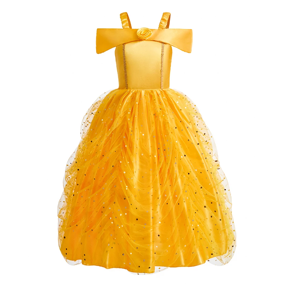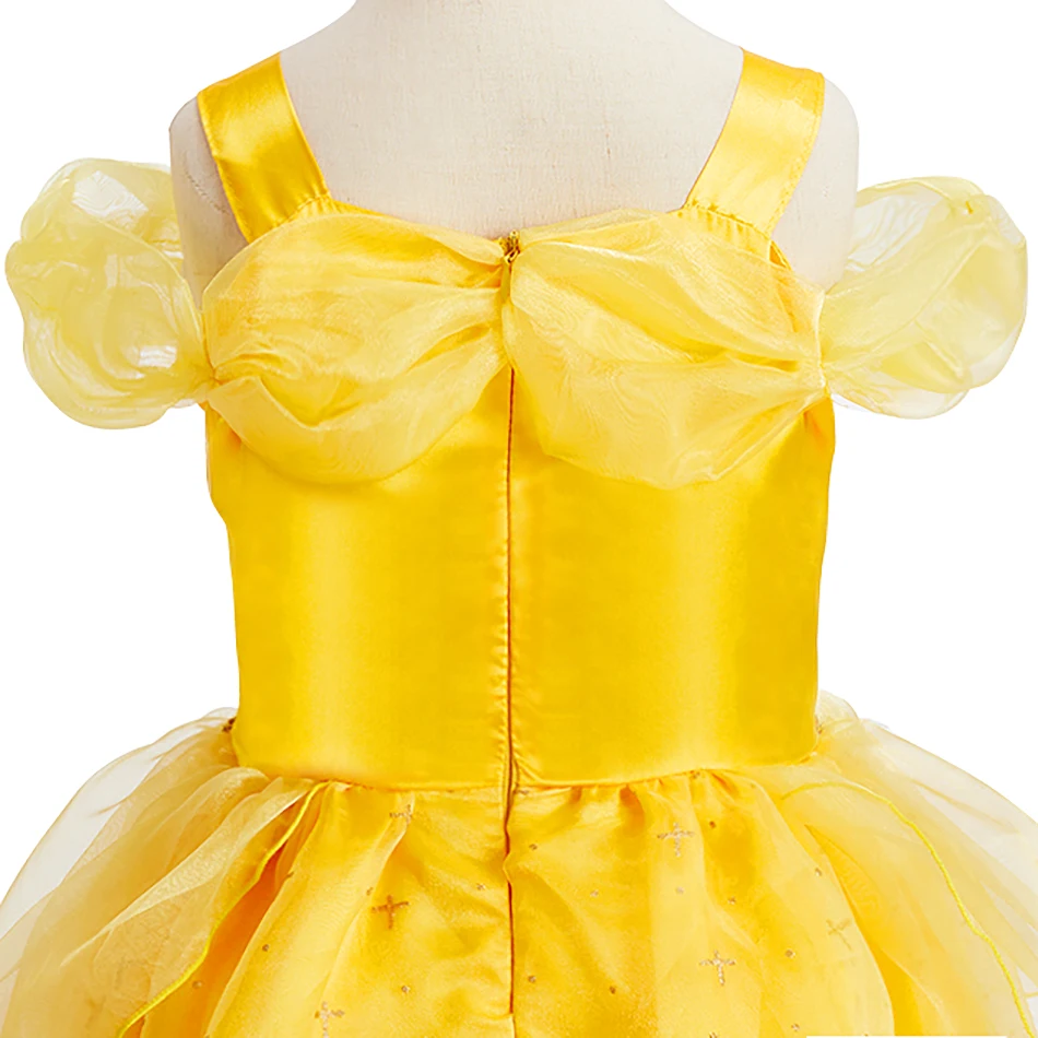 Comprar Disfraz de princesa para niños, disfraz de Bella amarilla para niñas, ropa de fiesta de actuación de cumpleaños, Carnaval y Halloween