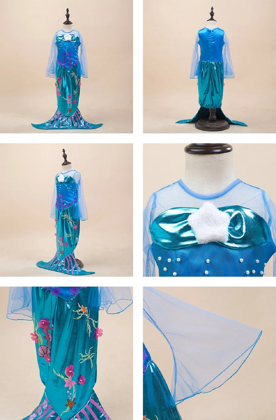 Nombre: disfraz de princesa para niños, ropa de sirena para Halloween, ropa de actuación de verano para niñas pequeñas, vestidos de Cosplay para niños
