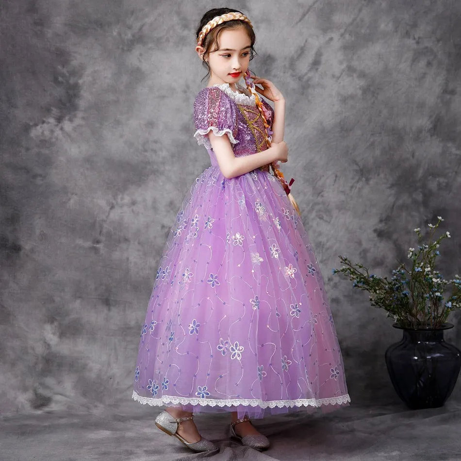Comprar Disfraz de Rapunzel para niña pequeña, vestido de lujo para Halloween, ropa de Navidad, 3, 4, 5, 6, 7, 8, 9 y 10 años