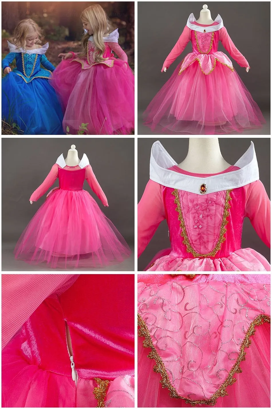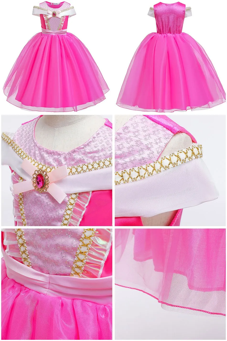 Nombre del vestido: Disfraz de Little Mermaid Aurora para niñas, vestido de belleza para dormir Ariel, disfraz de princesa de fantasía rosa para boda Barbi melocotón