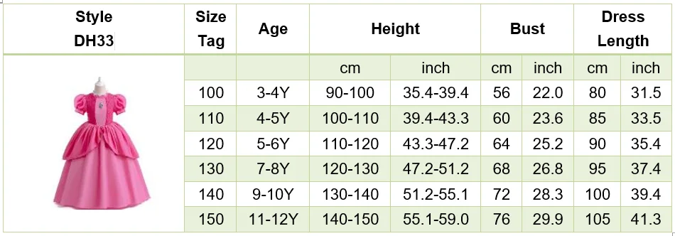Todos los vestidos tienen diferentes medidas debido a los diferentes estilos necesarios.