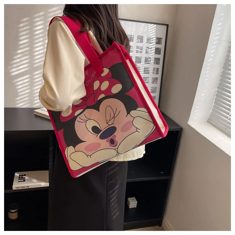 Disney-Bolso de mano de dibujos animados de Mickey para mujer y niña, bolso de hombro japonés INS, bolso de mano de lona de piel suave, bolso de compras informal de pana