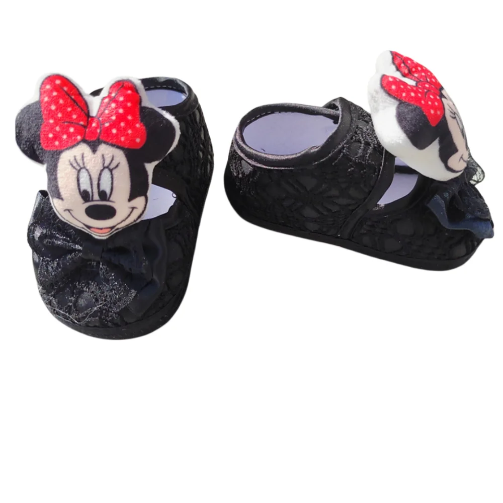 [1 par] Disney Anime Minnie Mouse 0-8 meses recién nacido bebé niña primeros andadores zapatos con muñeco de peluche algodón calcetín de suelo interior