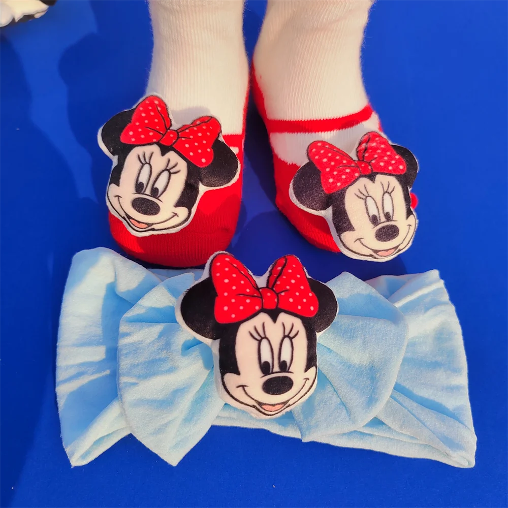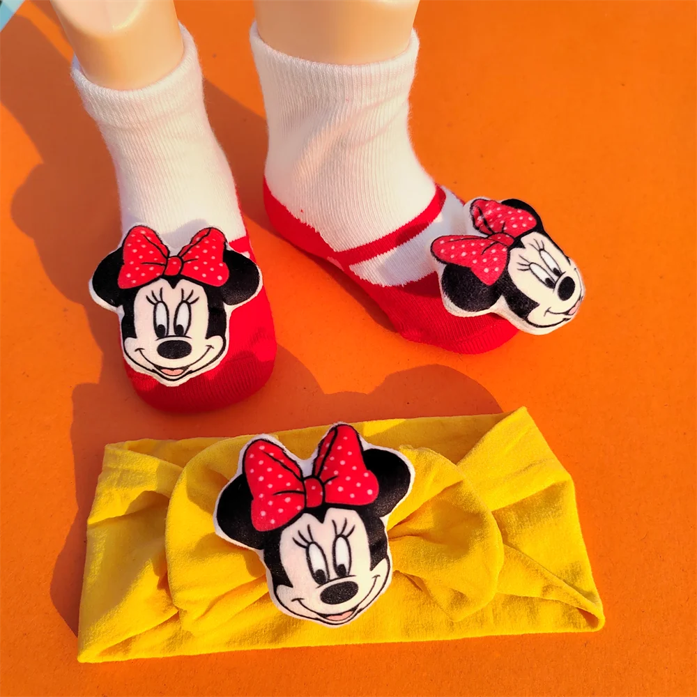 Comprar Disney-calcetines de Minnie Mouse para niños y niñas, calcetín antideslizante de interior, color rosa, accesorios para madres y niños de 0 a 18 meses