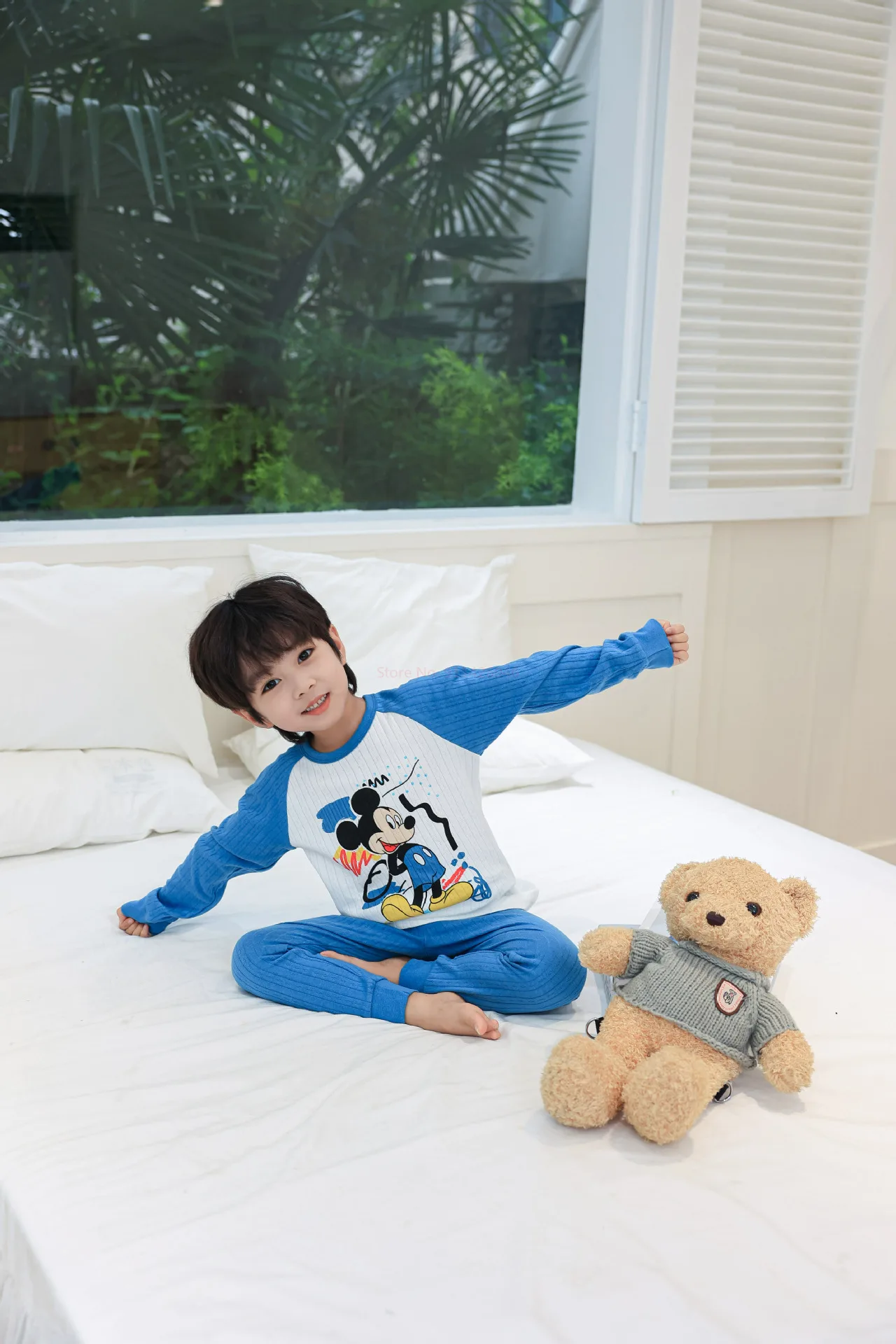 Comprar Disney-Conjunto de pijamas de dibujos animados para niños, ropa interior de manga larga, suave y cómoda, Mickey, Minnie Mouse, Pato Donald, otoño