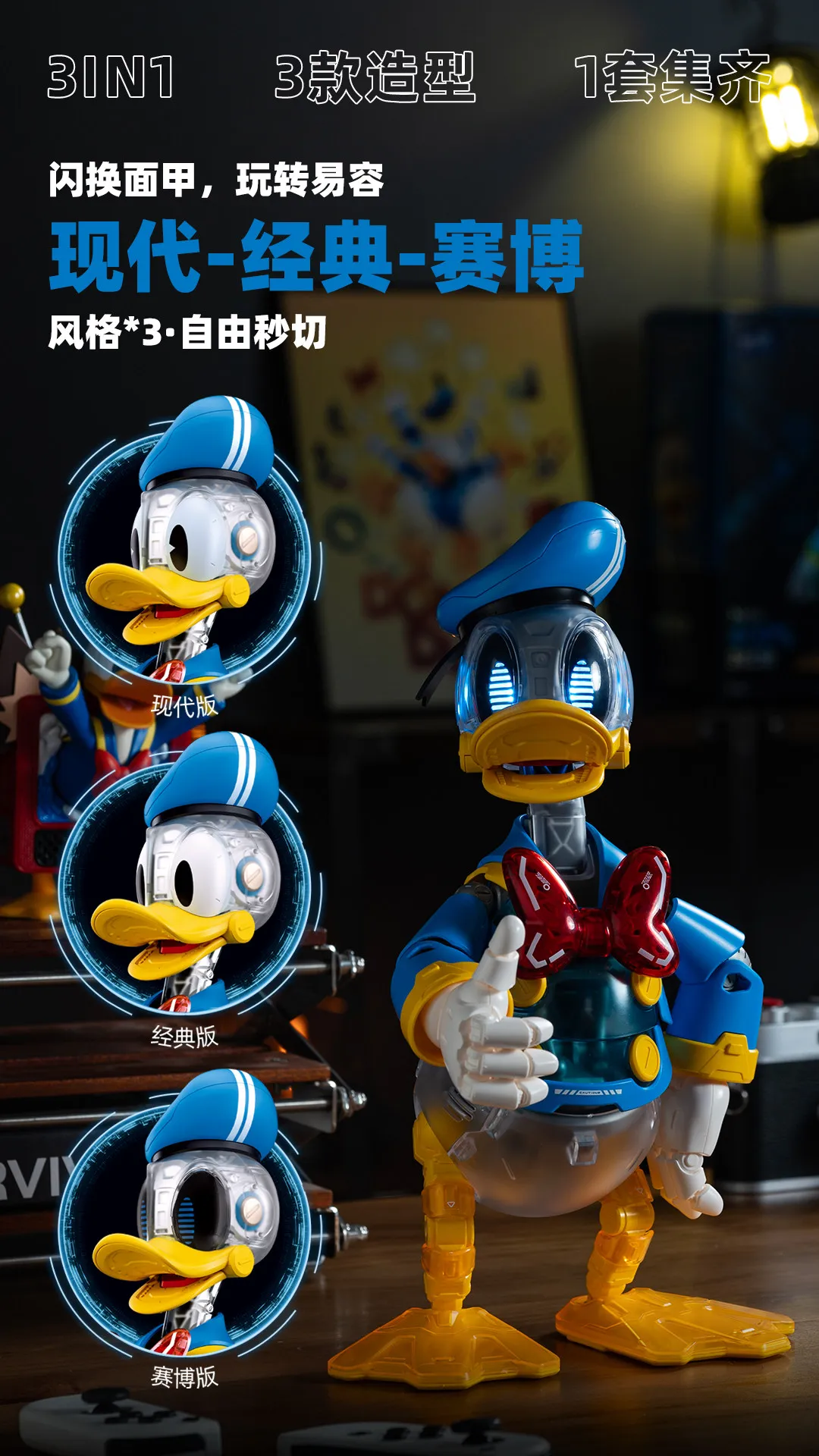Disney Cyber Mickey Donald pato armadura montaje modelo figura de acción decoración de escritorio de moda dibujos animados Anime jugar regalo de vacaciones