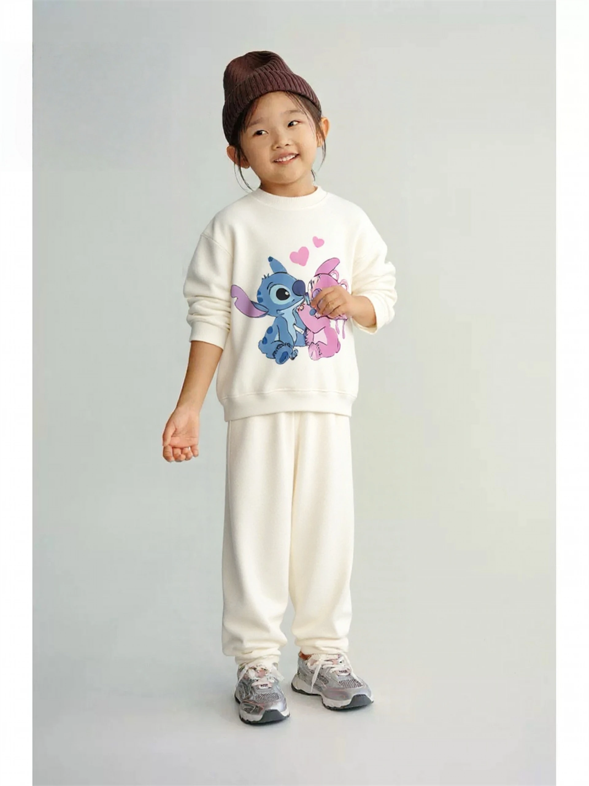 Disney-Disfraz de primavera y otoño para niñas, Tops informales con cuello redondo, pantalones de chándal, conjunto de 2 piezas, sudadera con capucha de dibujos animados, trajes de mallas