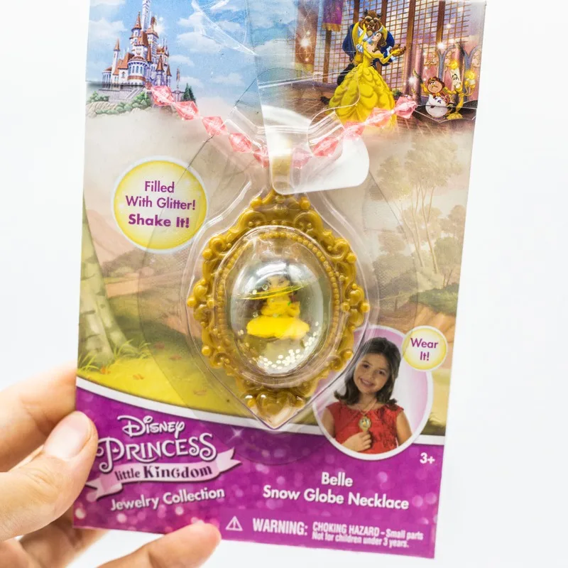 Comprar Disney Princess Little Kingdom colección de joyas, collares de globo de nieve, juguete Belle, Rapunzel, Ariel, Cenicienta, muñeca, juguetes para niños, regalos