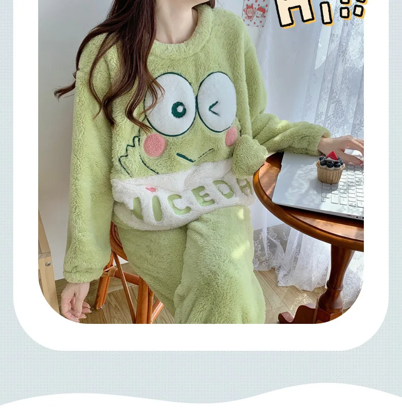Comprar Disney-ropa de dormir Kawaii Sanrio Stitch para mujer, conjunto de Pijama de felpa de Coral, Cinnamoroll, dibujos animados, para el hogar, novedad de invierno