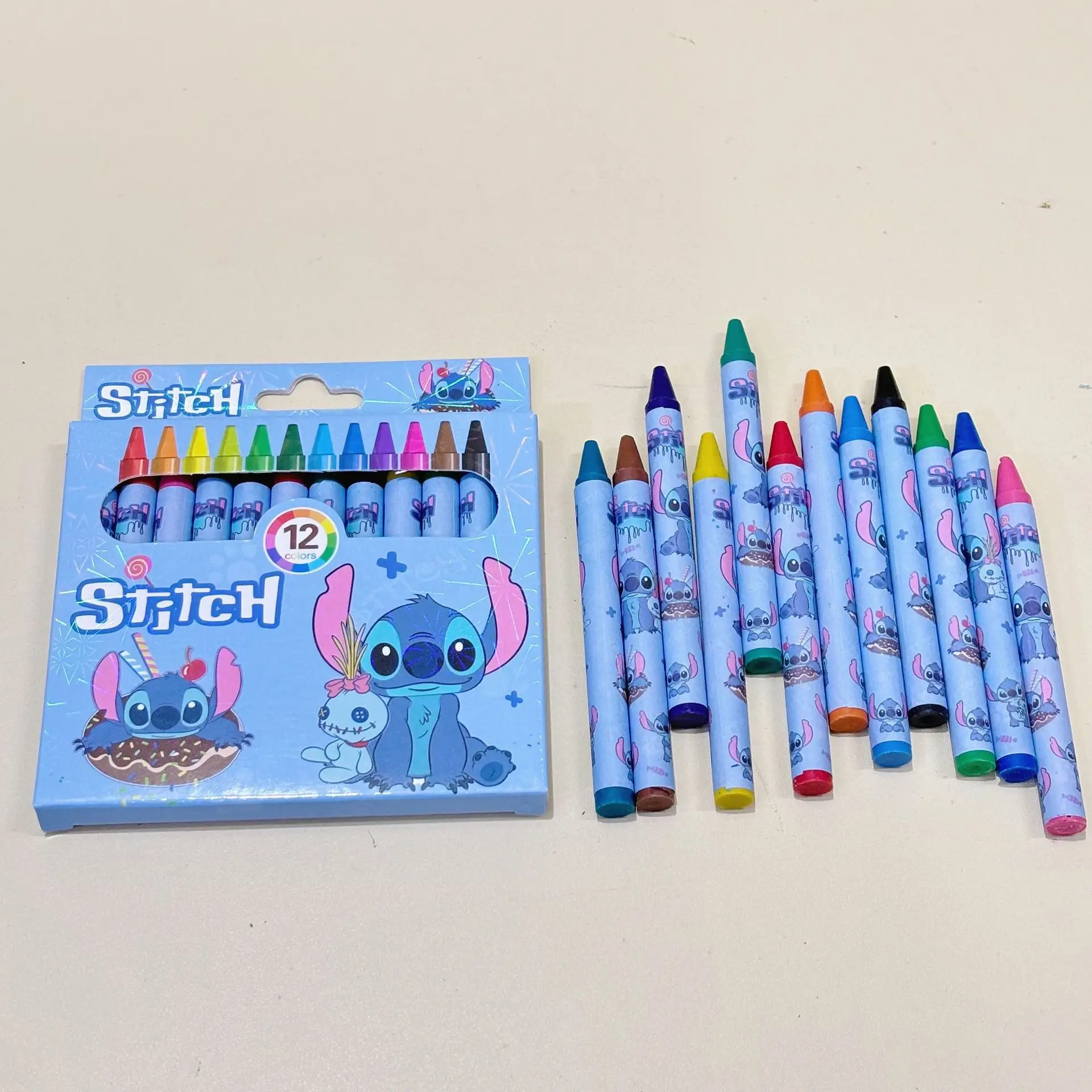 Disney Stitch-Juego de Pastel al óleo de artista, 12 colores, pintura para niños, dibujo, Graffiti, arte, crayones, suministros escolares y de oficina lavables