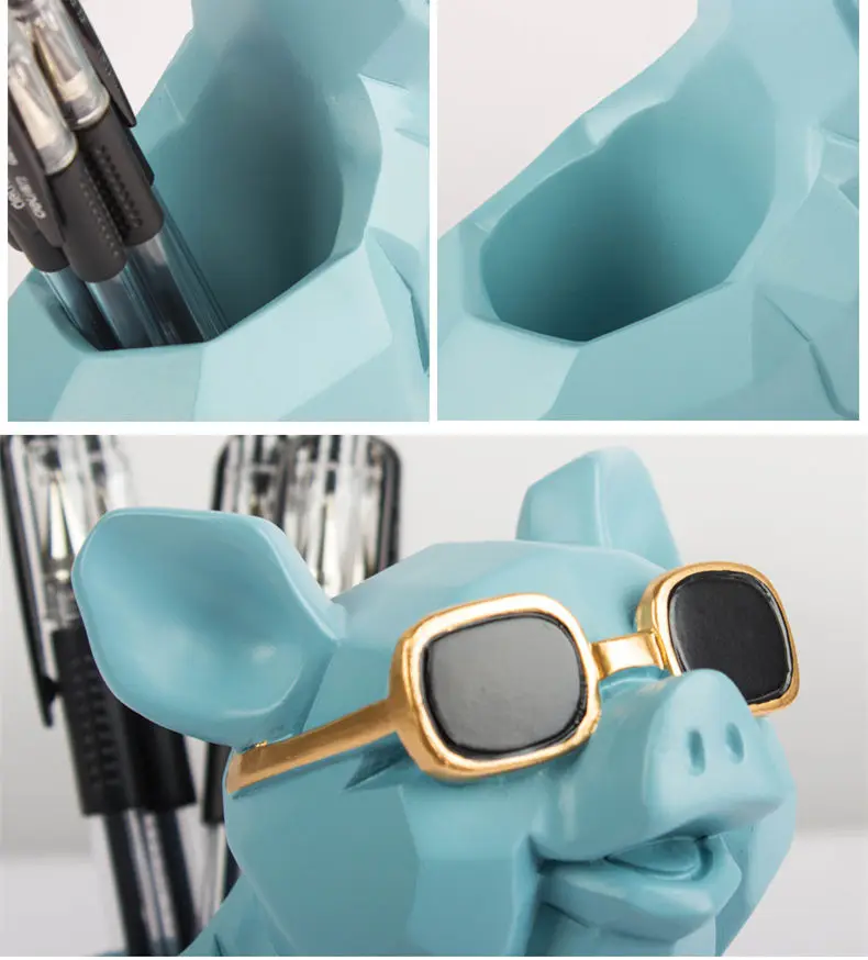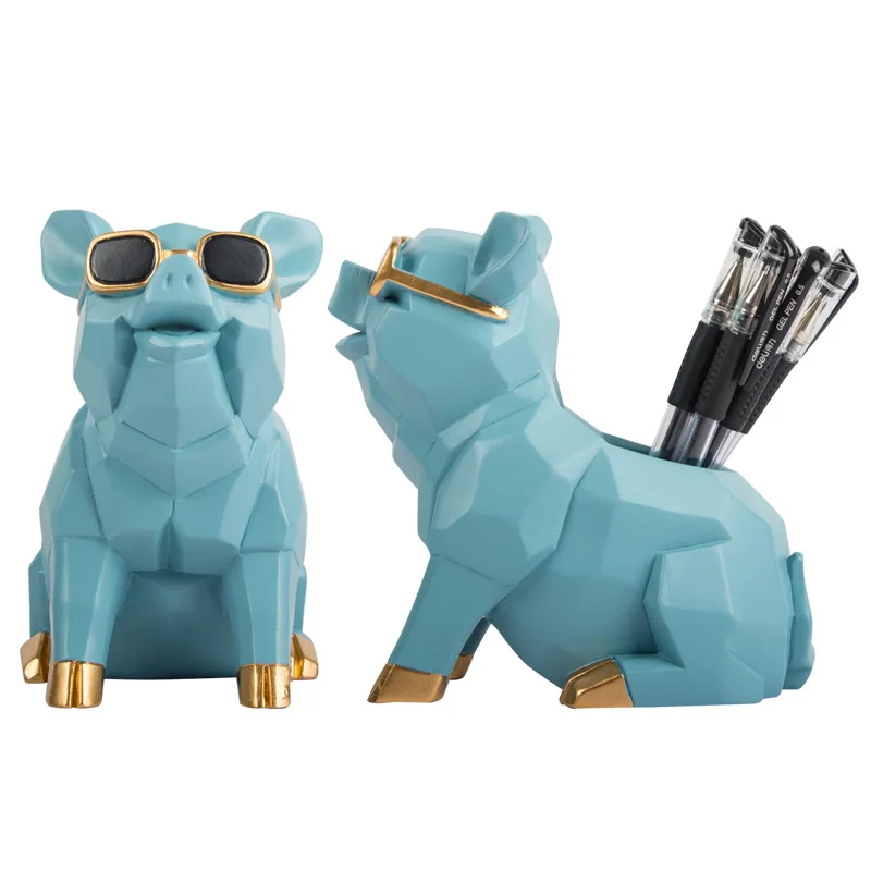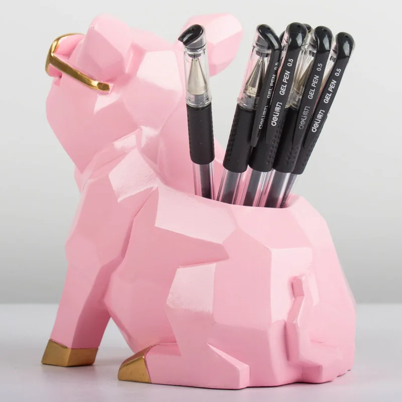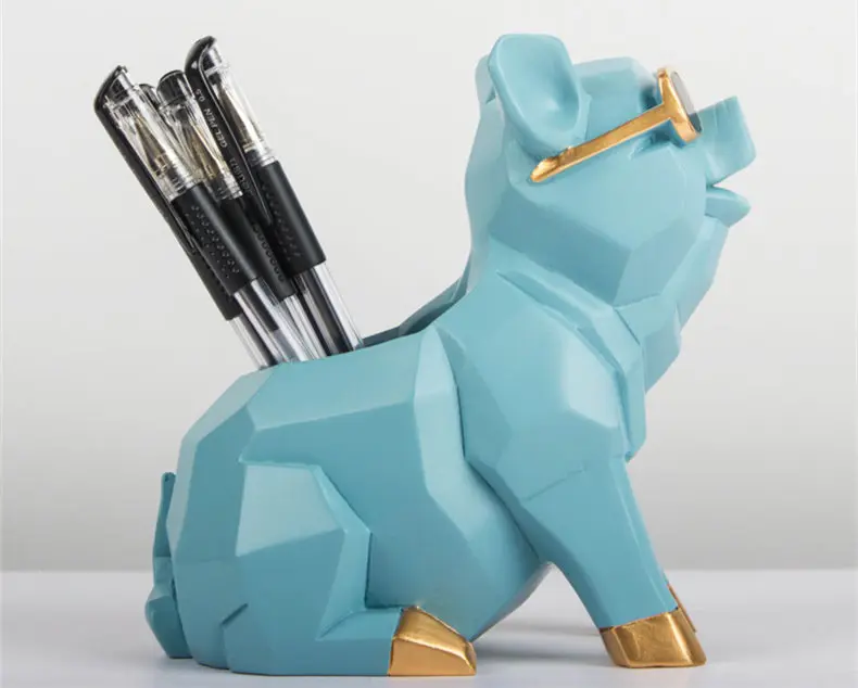 Comprar [Divertido] artesanías de cerámica europea, caja de almacenamiento con portalápices de cerdo, modelo de decoración del hogar, adornos, contenedor de bolígrafo de cerdo bonito y creativo, regalo