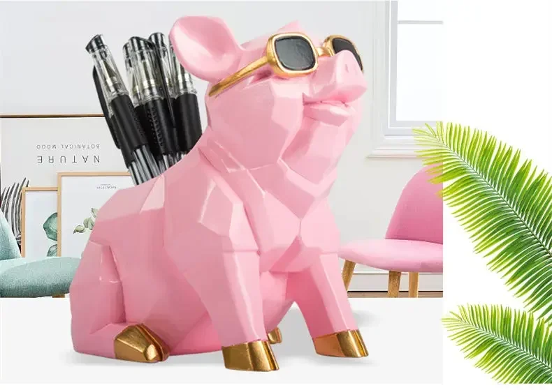 Comprar [Divertido] artesanías de cerámica europea, caja de almacenamiento con portalápices de cerdo, modelo de decoración del hogar, adornos, contenedor de bolígrafo de cerdo bonito y creativo, regalo
