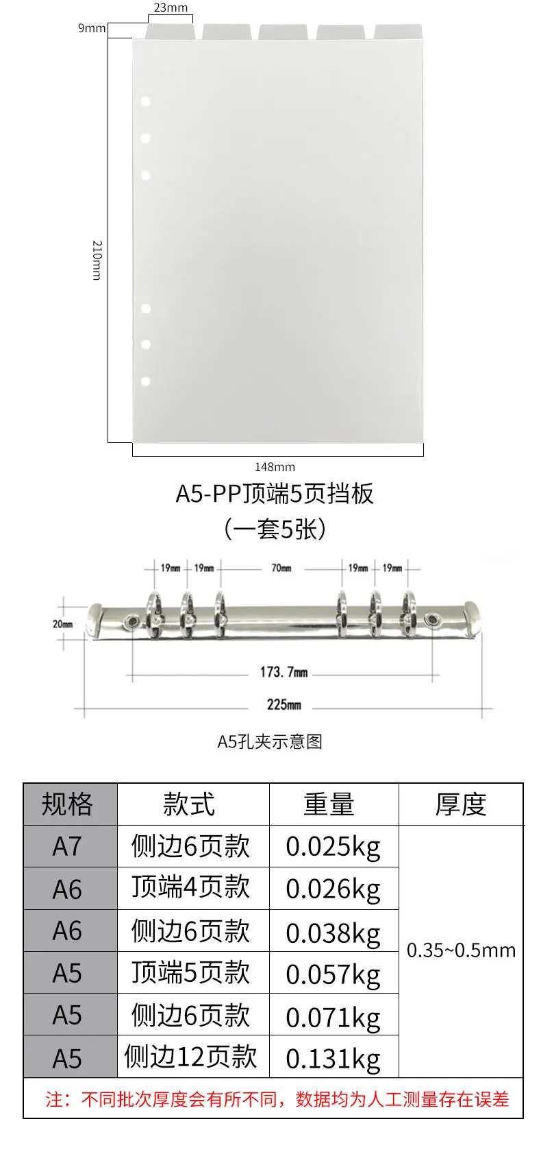 Comprar Divisor de índice de papel transparente A5 A6, 6 agujeros para carpeta, planificador, cuaderno, papelería, cuaderno, accesorios divisores de papel