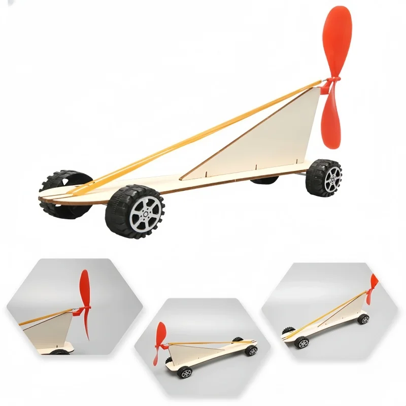 Diy bandas de goma de madera turbinas eólicas coches eléctricos juguetes científicos pequeñas artesanías invenciones hechas a mano ensamblaje material didáctico regalos
