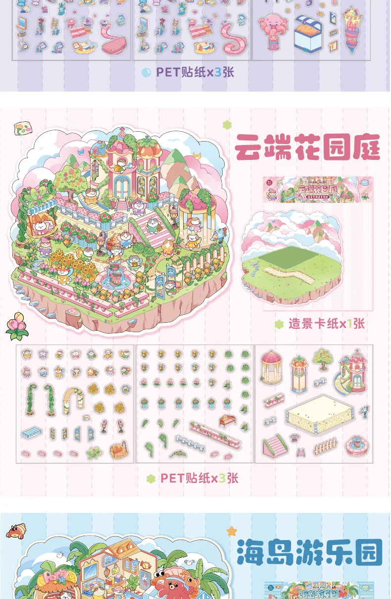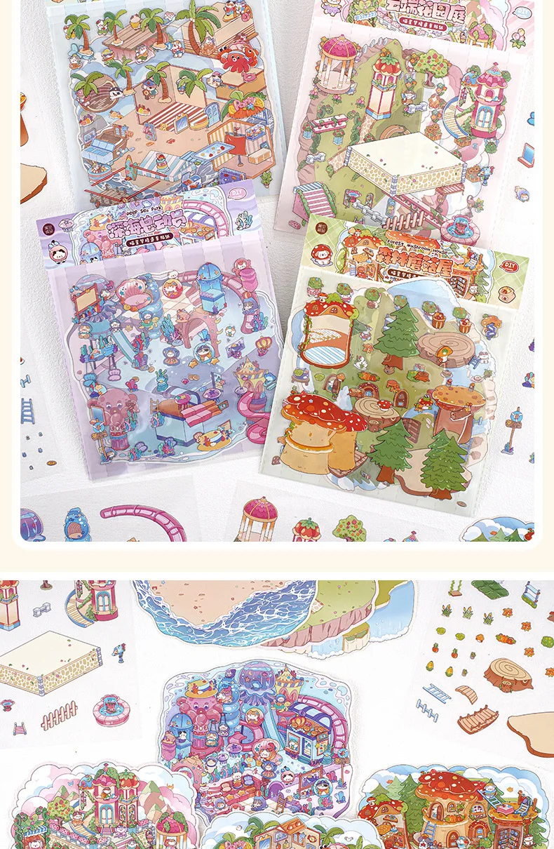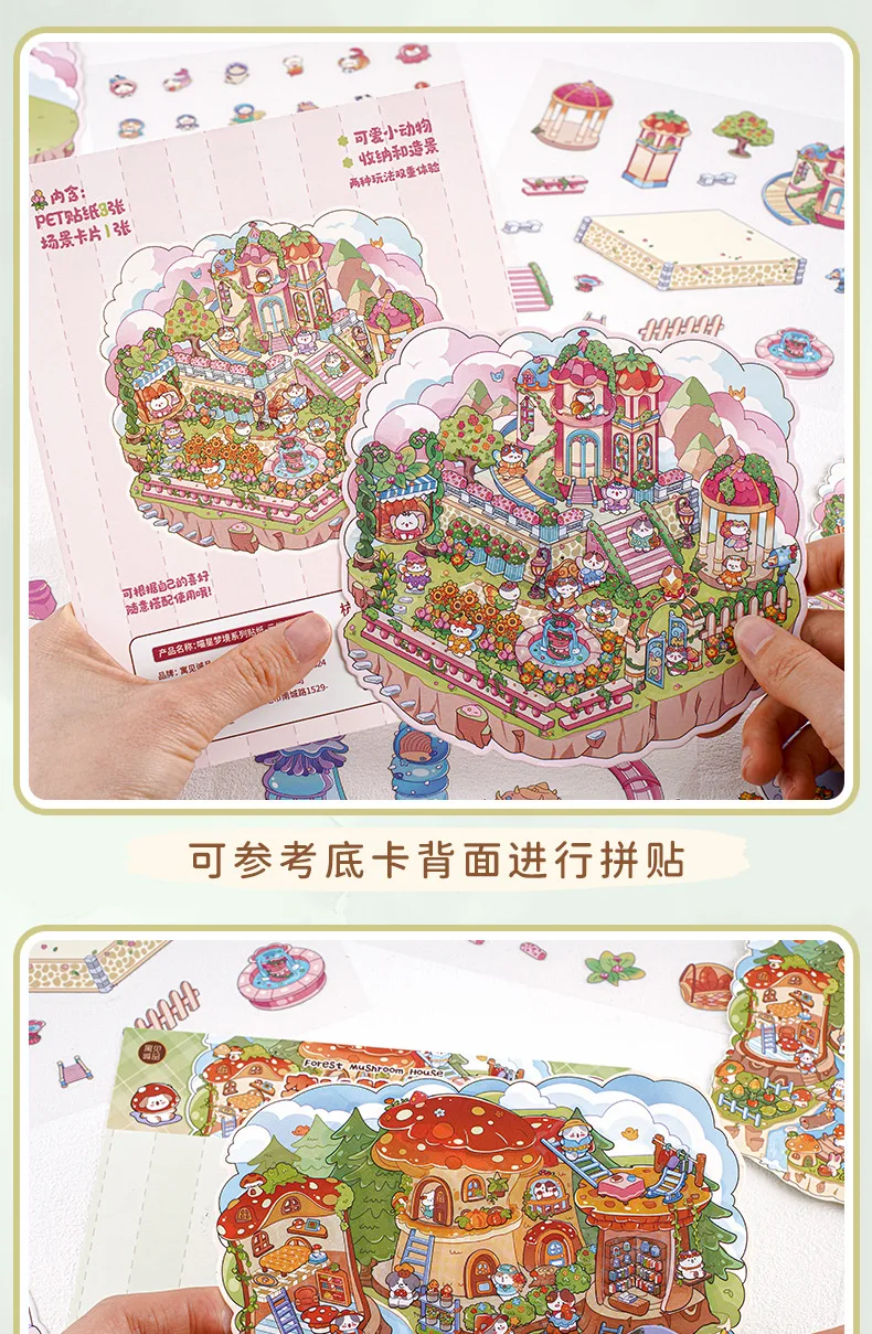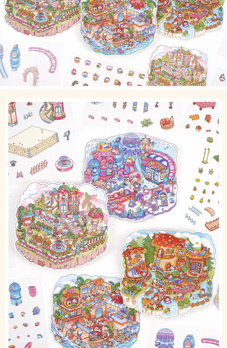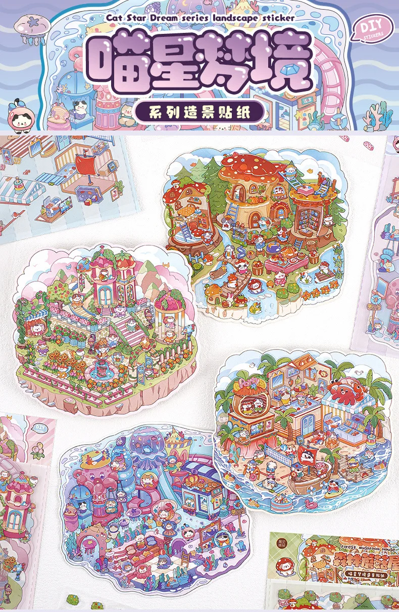 Comprar DIY dibujos animados colorido mundo en sueños de gato lindo 3D escena en miniatura pegatina bolsillo cabina escena apilamiento pegatinas regalo para chico