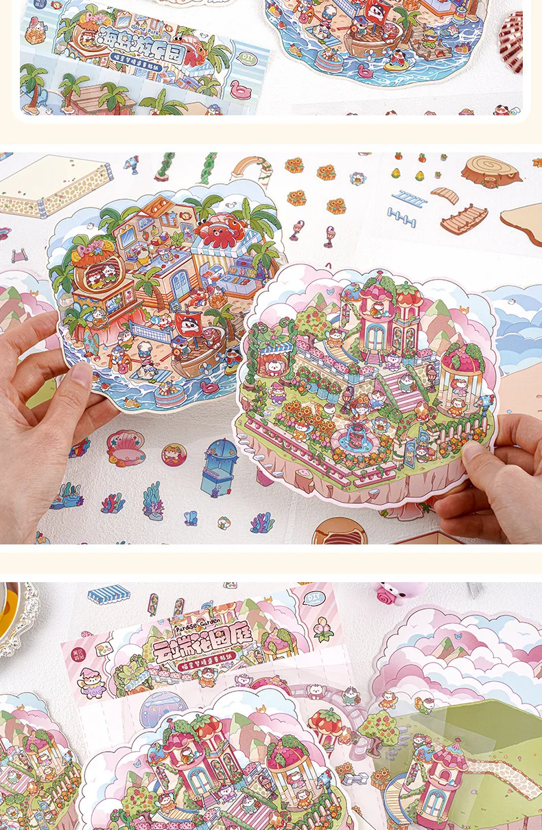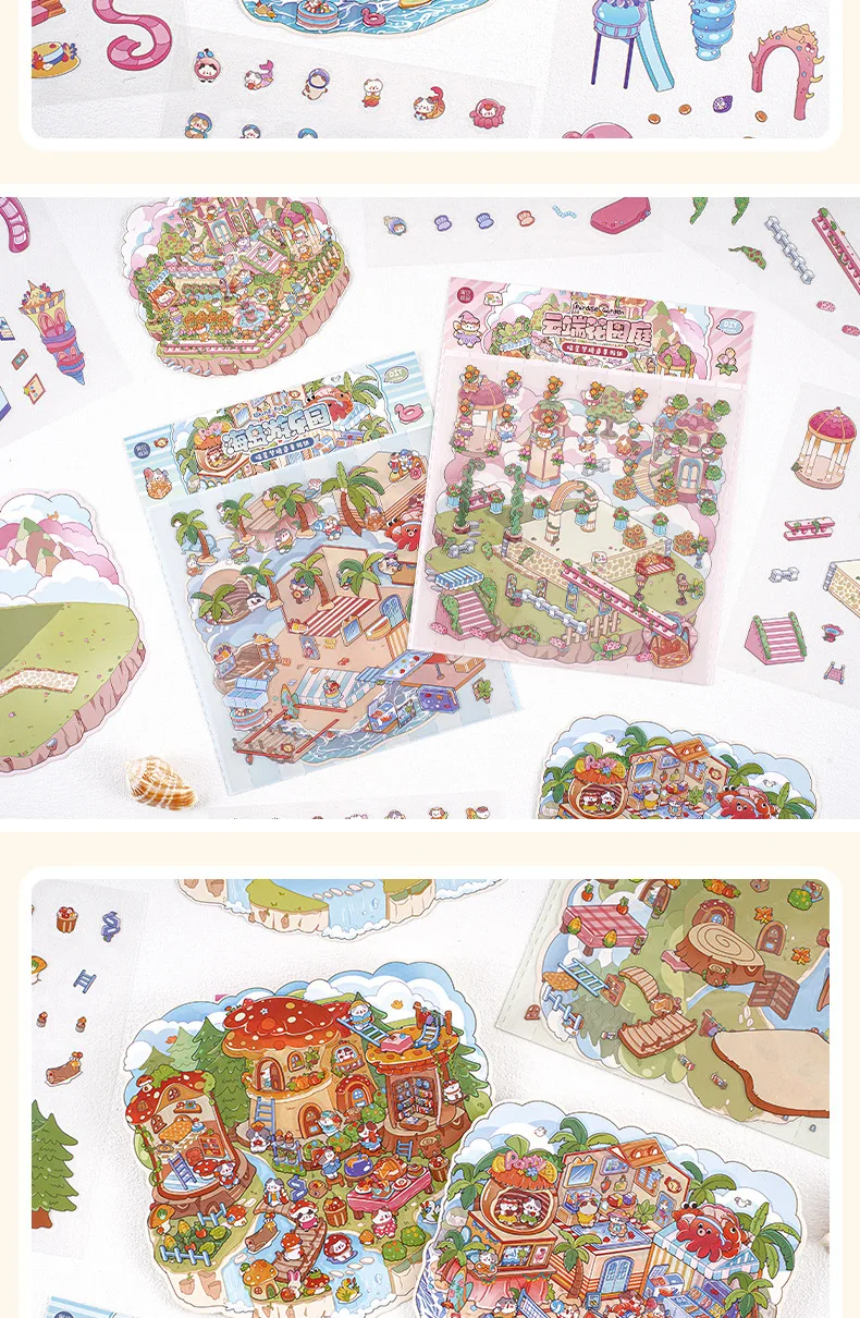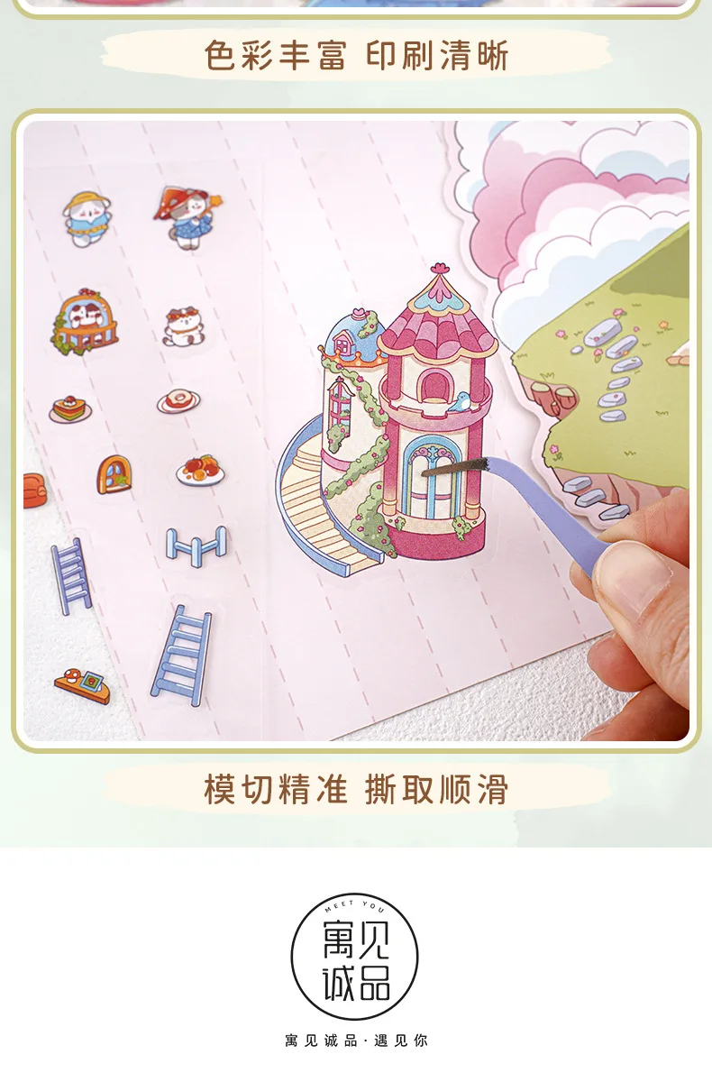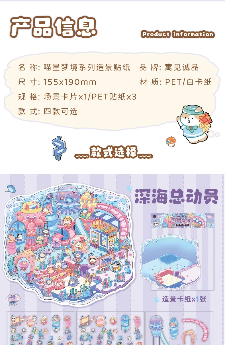 Comprar DIY dibujos animados colorido mundo en sueños de gato lindo 3D escena en miniatura pegatina bolsillo cabina escena apilamiento pegatinas regalo para chico
