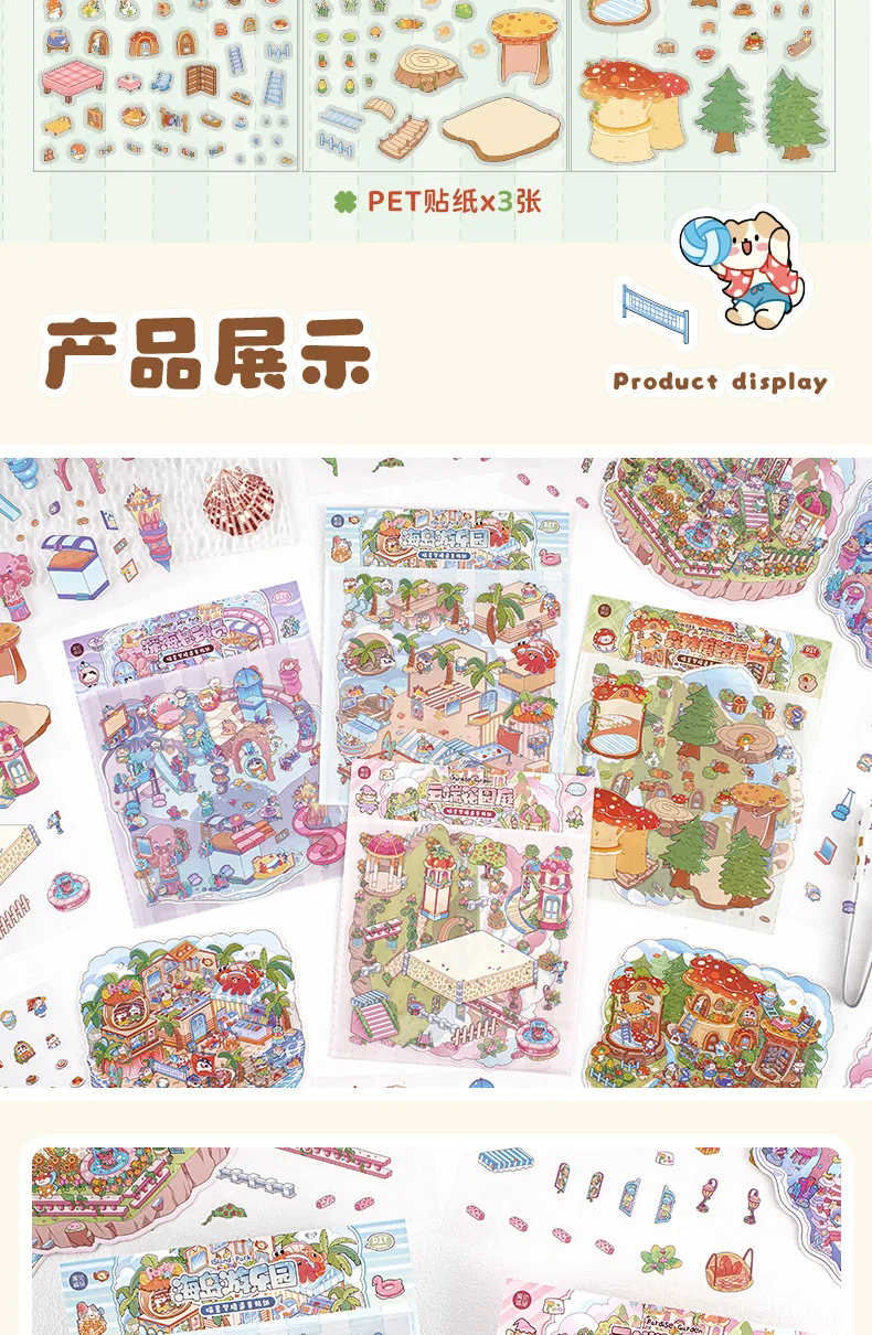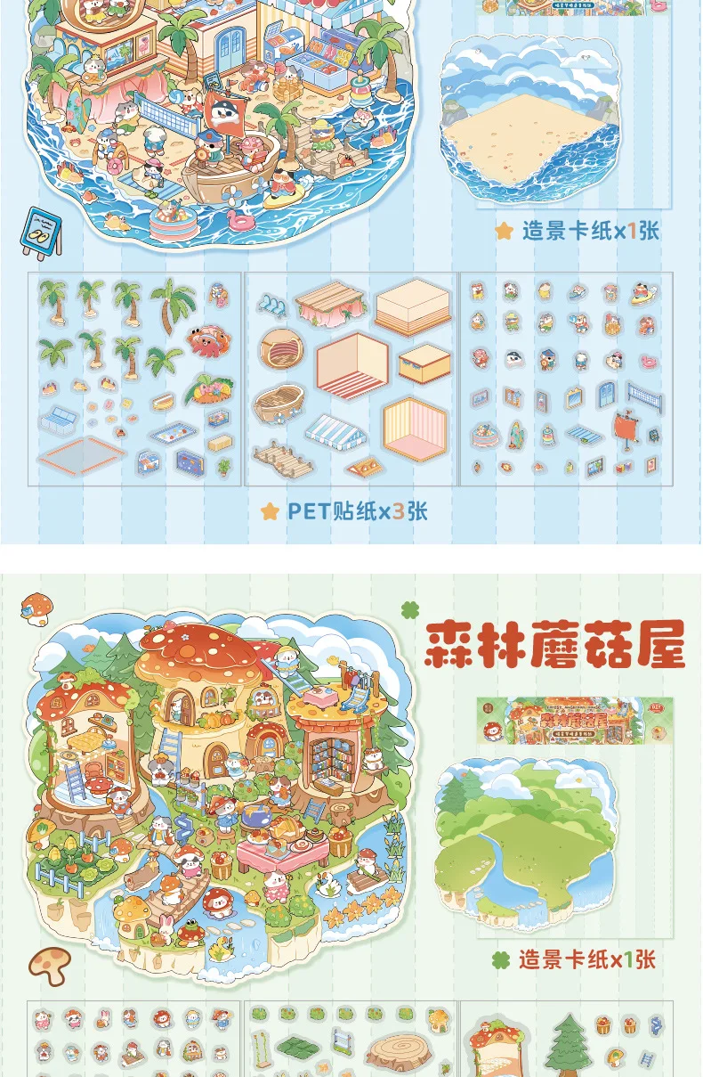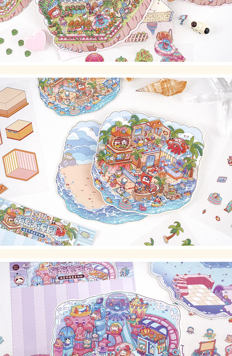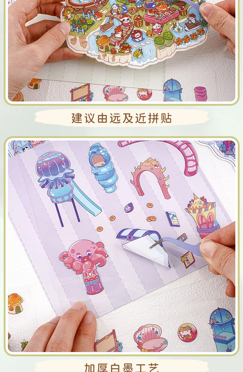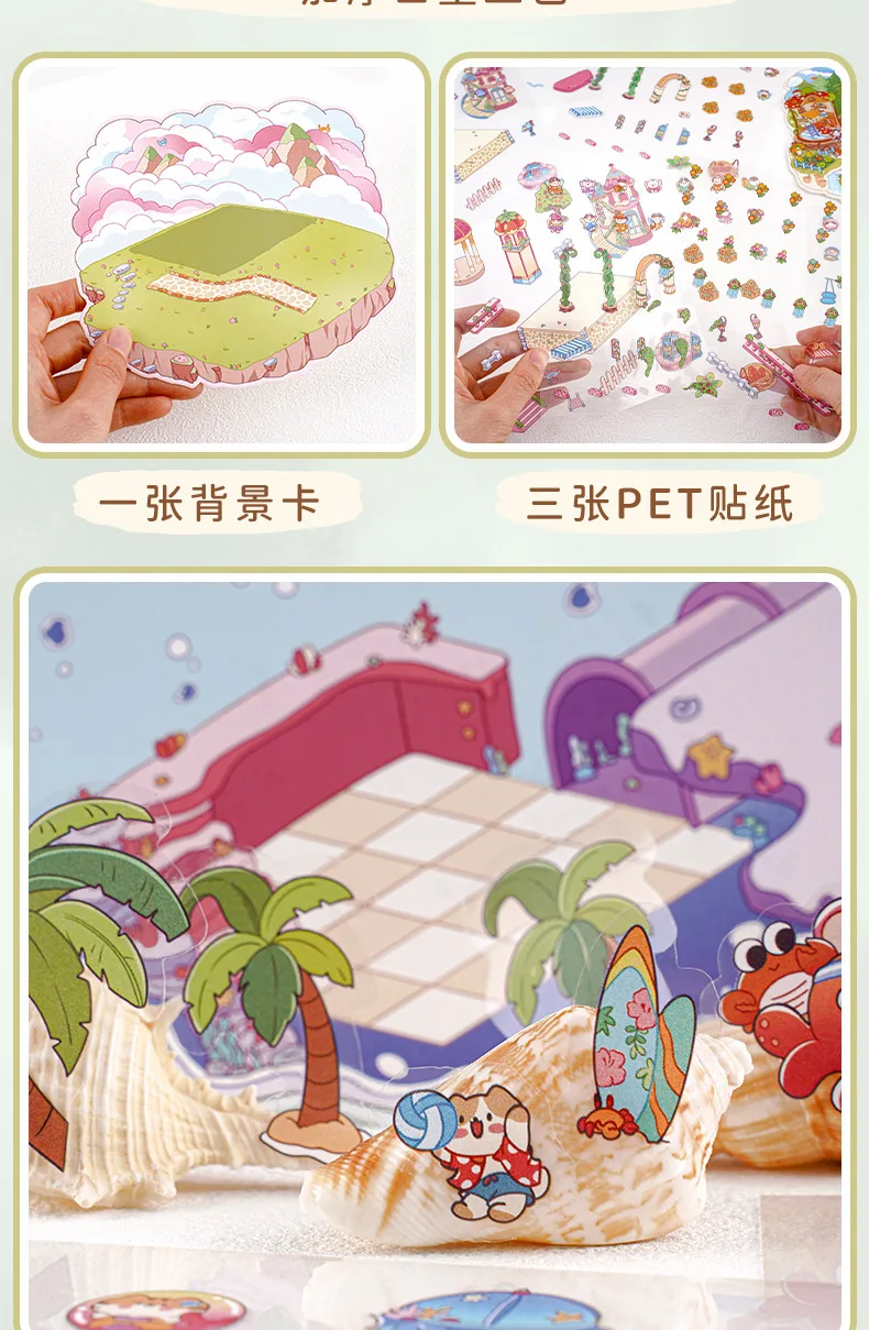 Comprar DIY dibujos animados colorido mundo en sueños de gato lindo 3D escena en miniatura pegatina bolsillo cabina escena apilamiento pegatinas regalo para chico