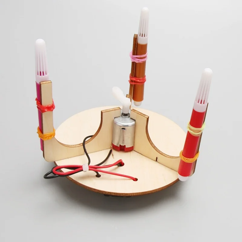 DIY Graffiti Robot juguete rompecabezas para niños ciencia experimento Prop de madera hecho a mano modelo de juguete